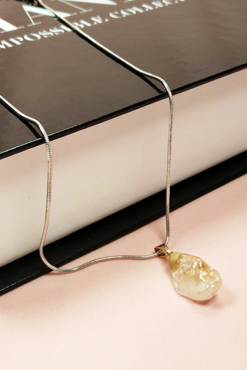 Sitrin Doğal Taşı Zincirli El Yapımı Kolye Uç: 2 cm Zincir: 20 cm Kutulu