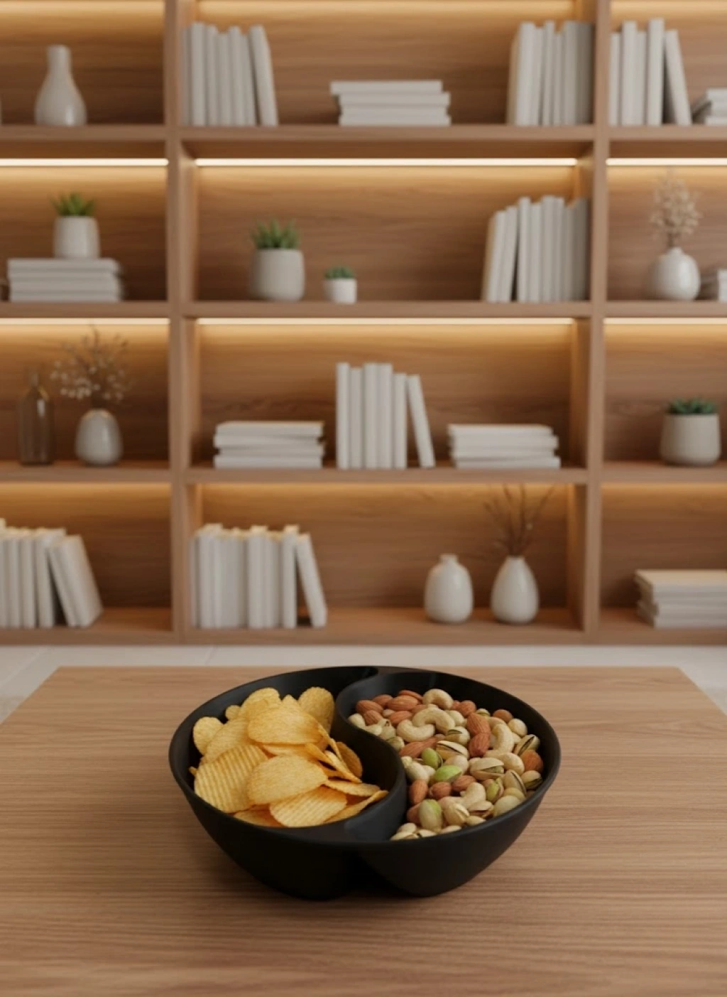 Siyah çerezlik kase seti, modern ve güçlü rengiyle salon ve masa üstü sunumlarına şık bir görünüm kazandırır. 3x12 cm ölçüsündeki kaseler, çerez, kuruyemiş ve atıştırmalıklar için ideal boyuttadır. 4 adetlik set içeriği sayesinde hem günlük kullanımda hem de misafir ağırlarken pratik bir çözüm sunar.Bölmeli tasarımı, farklı çerez çeşitlerini aynı kase içinde düzenli şekilde sunmanıza yardımcı olur. Çerezlerin birbirine karışmasını önleyerek masa üzerinde düzenli ve es bir sunum sağlar. Siyah rengi, özellikle loş ama aydınlık salon ortamlarında zarif ve modern bir kontrast oluşturur.Salon masası, sehpa veya TV ünitesi üzerinde rahatlıkla kullanılabilir. Hem işlevsel hem de dekoratif bir çerezlik seti arayanlar için ideal bir tercihtir.