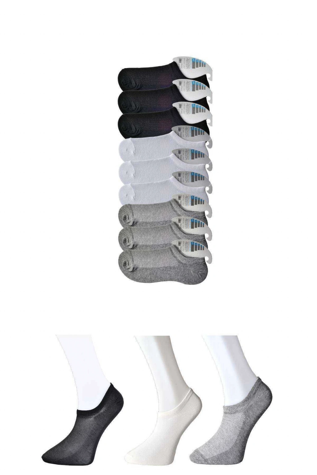 Siyah Gri ve Beyaz Erkek Görünmez Çorap 9 çift