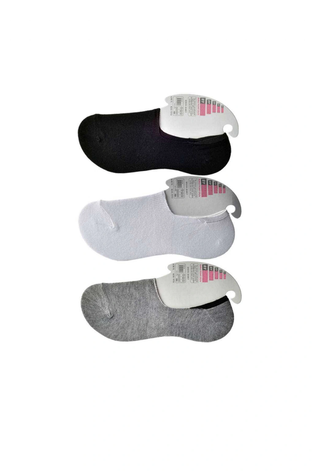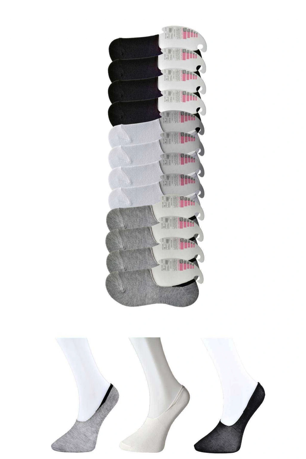 Siyah Gri ve Beyaz Kadın Babet Çorap 12 çift