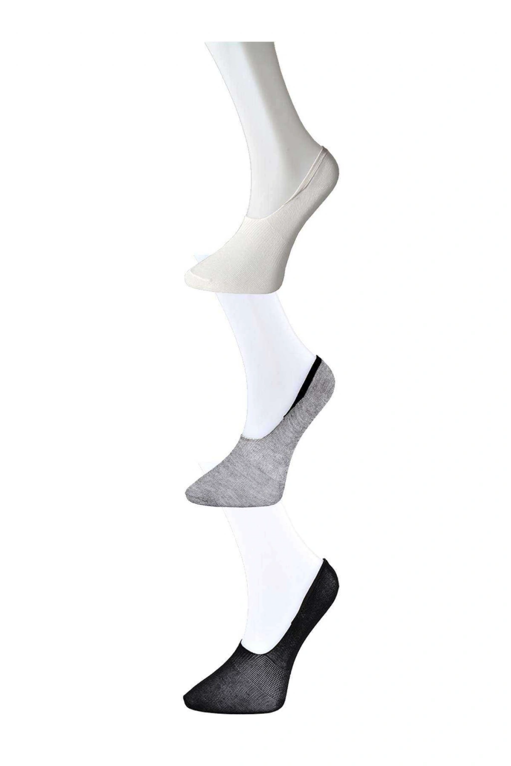 Siyah Gri ve Beyaz Kadın Babet Çorap 3 çift