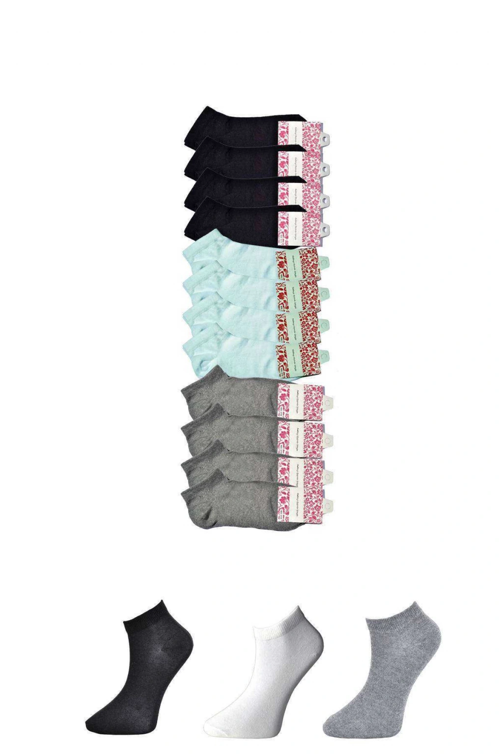 Siyah Gri ve Beyaz Kadın Bilek Çorap 12 çift