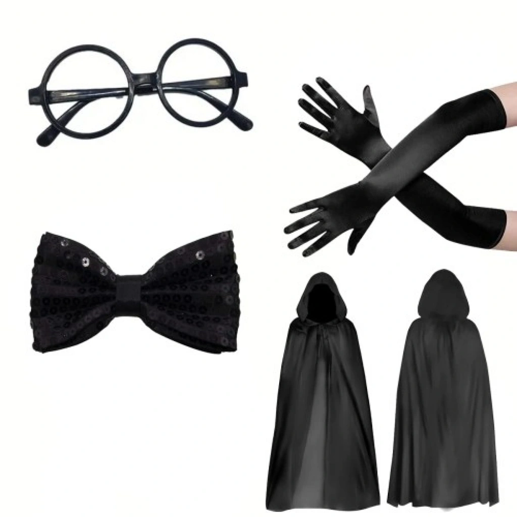 Siyah Kapüşonlu Büyücü ve Cadı Kostüm Seti | 4 Parça Tam KombinKaranlık dünyaların kapısını aralayın! 120 cm Siyah Kapüşonlu Pelerin ve Aksesuar Seti, klasik büyücü ve cadı imajını modern detaylarla birleştiriyor. Sahne performanslarından cosplay etkinliklerine kadar her ortamda gizemli ve otoriter bir duruş sergilemenizi sağlayacak bu set, ihtiyacınız olan tüm kilit parçaları tek bir pakette sunuyor.Set İçeriği: 4 Parça Profesyonel Görünüm120 cm Siyah Kapüşonlu Pelerin: Kaliteli jarse kumaştan üretilmiştir. Akışkan yapısı ve geniş kapüşonuyla dramatik bir hava yaratır.Camlı Yuvarlak Gözlük: Klasik büyücü ve profesör karakterlerinin imza aksesuarı. Gerçekçi bir dokunuş katar.Payetli Siyah Papyon: Işıltılı yapısıyla kostümünüze hem asalet hem de sahneye uygun bir görsel şölen ekler.Siyah Uzun Rugan Eldiven: Parlak dokusuyla dikkat çeken, dirseğe kadar uzanan bu eldivenler, kostümün "premium" ve çekici görünmesini sağlar.Öne Çıkan ÖzelliklerDramatik Kesim: 120 cm uzunluğundaki pelerin, omuzdan aşağıya zarif bir şekilde dökülerek yürüyüşünüze ihtişam katar.Parlak Rugan Detayı: Sıradan kumaş eldivenlerin aksine, rugan dokusu ışığı yansıtır ve karakterinize modern bir "gotik" şıklık kazandırır.Çok Yönlü Kullanım: Parçaları birlikte kullanarak tam bir set oluşturabilir veya gözlük ve papyonu farklı kostümlerle de kombinleyebilirsiniz.Konforlu Jarse Kumaş: Pelerin kumaşı hafiftir ve terletme yapmaz; uzun süreli sahne performanslarında veya partilerde hareket özgürlüğü sağlar.Kullanım AlanlarıTiyatro ve Okul Gösterileri: Büyücü, cadı, kont veya karanlık karakter canlandırmaları için.Cosplay Etkinlikleri: Fantastik evrenlerin ikonik karakterlerini hayata geçirmek adına ideal temel set.Cadılar Bayramı & Kostüm Partileri: Hazırlık gerektirmeden, saniyeler içinde etkileyici bir karaktere bürünmek için.Konsept Çekimler: Gotik veya gizemli temalı fotoğraf ve video projelerinde görsel derinlik oluşturmak adına.Neden Bu Seti Seçmelisiniz?Tamamlanmış Stil: Aksesuarları tek tek toplama zahmetinden kurtarır, renk ve doku uyumu sağlar.Dayanıklılık: Rugan ve jarse malzemelerin kalitesi sayesinde defalarca kullanılabilir.Geniş Uyum Aralığı: Pelerin ve aksesuarlar hem yetişkinler hem de gençler için standart ölçülerde tasarlanmıştır.Teknik Özellikler TablosuÖzellikDetayPelerin Boyu120 cm (Kapüşon Hariç)Kumaş TürüKaliteli Jarse (Pelerin) / Rugan (Eldiven)Aksesuar DetayıCamlı Gözlük & Payetli PapyonRenkGece SiyahıBedenStandart (Unisex - Genç ve Yetişkin)