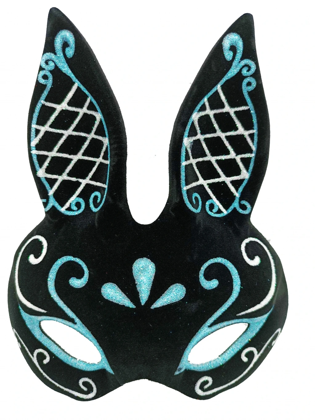 Siyah Mavi Beyaz Simli Tavşan Maskesi