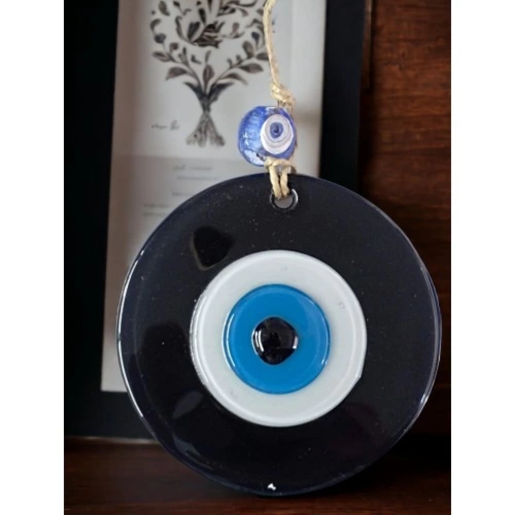 Siyah Nazar Boncuklu Duvar Süsü 10 Cm Cam Duvar Dekoru