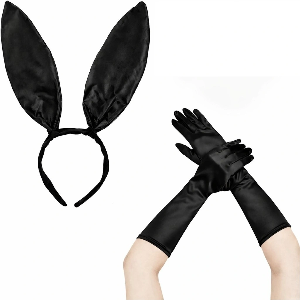 Şıklığı ve dikkat çekici tasarımı bir arada sunan Siyah Saten Tavşan Kulak ve Eldiven Kostüm Seti, parti ve özel organizasyonlar için mükemmel bir tercihtir.