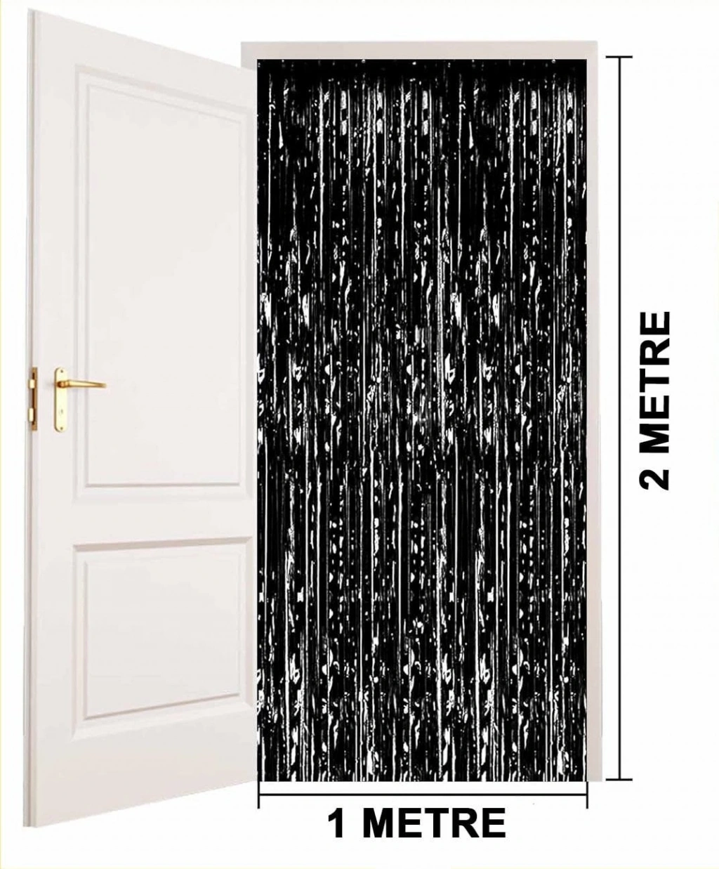 Siyah renk ekstra metalize parlak saçaklı arka fon perdesi ile özel günlerinize ve kutlamalarınıza göz kamaştırıcı bir ışıltı katın! İthal A kalite malzemeden üretilen bu perde, 1x2 metre boyutuyla her türlü dekorasyona uyum sağlar.