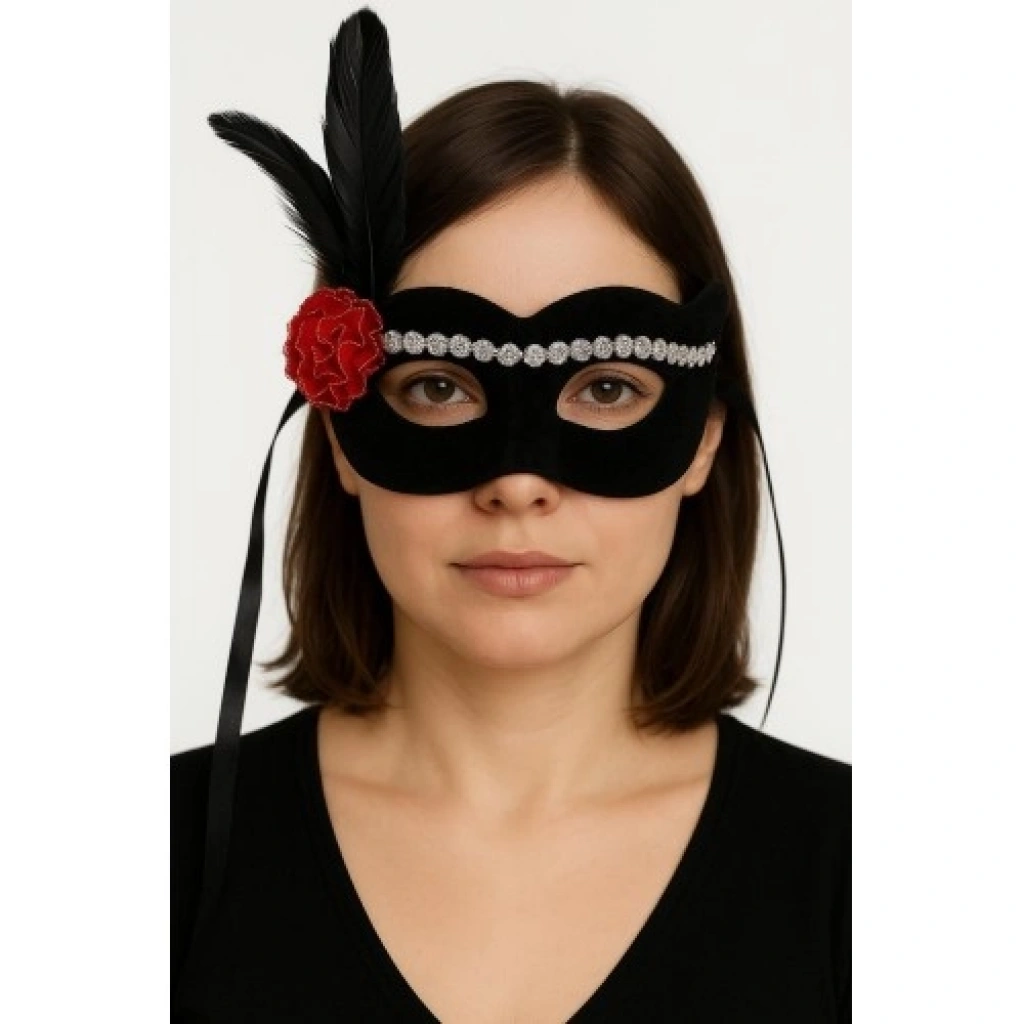 Siyah Renk Süet Kaplama Gümüş Dantelli Kırmızı Gül Tasarımlı Parti Maskesi 18x20 cmRomantik ve zarif bir görünüm elde etmek isteyenler için tasarlanan siyah renk süet kaplama parti maskesi, şık detaylarıyla maskeli balo ve özel gecelerin vazgeçilmez aksesuarıdır. Süet kaplamalı yüzeyi, gümüş dantel süslemeleri ve dikkat çekici kırmızı gül tasarımı ile estetik ve sofistike bir duruş sunar.18x20 cm ölçülerindeki ergonomik yapısı, yüze rahatça oturarak konforlu bir kullanım sağlar. Kaliteli süet kumaş, plastik ve dantel malzemeden üretilmiş olan bu parti maskesi, hafif ve dayanıklı yapısı sayesinde uzun süreli kullanıma uygundur. Şık tasarımıyla farklı kıyafetlerle kolayca kombinlenebilir.Balolar, maskeli partiler, kostüm etkinlikleri, özel geceler ve romantik organizasyonlar için ideal olan bu gümüş dantelli kırmızı gül detaylı maske, zarif ve göz alıcı bir stil arayanlar için mükemmel bir seçimdir. Yeniden kullanılabilir yapısı sayesinde birden fazla etkinlikte rahatlıkla tercih edilebilir.
