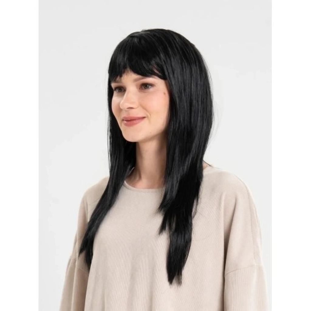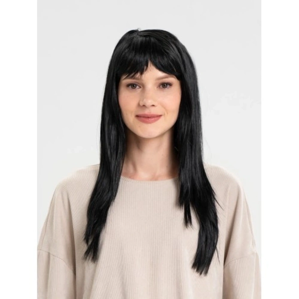 Siyah Renk Uzun Parti Peruğu 60 cmKostüm ve parti kombinlerine klasik ve güçlü bir görünüm kazandıran siyah renk uzun parti peruğu, sade ve şık tasarımıyla birçok konsepte uyum sağlar. Uzun şekilli takma saç modeli sayesinde sahne performansları, cosplay ve temalı etkinliklerde etkileyici bir stil oluşturur.60 cm uzunluğa sahip olan bu siyah uzun peruk, sentetik malzemeden üretilmiştir. Peruk içerisinde yer alan astar, orijinal saç modelinizi bozmadan rahat bir kullanım sunar. Yetişkinler için uygundur; çocuklar için kullanılmak istendiğinde peruk içindeki astar kısmı daraltılarak kolayca ayarlanabilir.Ürün 2. sınıf malzemeden imal edilmiştir ve ilk kullanım öncesinde hafif dökülme yapabilir. Daha sağlıklı bir kullanım için peruğu takmadan önce hafifçe sallayarak zayıf tellerin dökülmesi önerilir. Kostüm partileri, tiyatro ve sahne gösterileri, fotoğraf çekimleri ve eğlenceli organizasyonlar için ekonomik ve pratik bir uzun siyah peruk seçeneğidir.