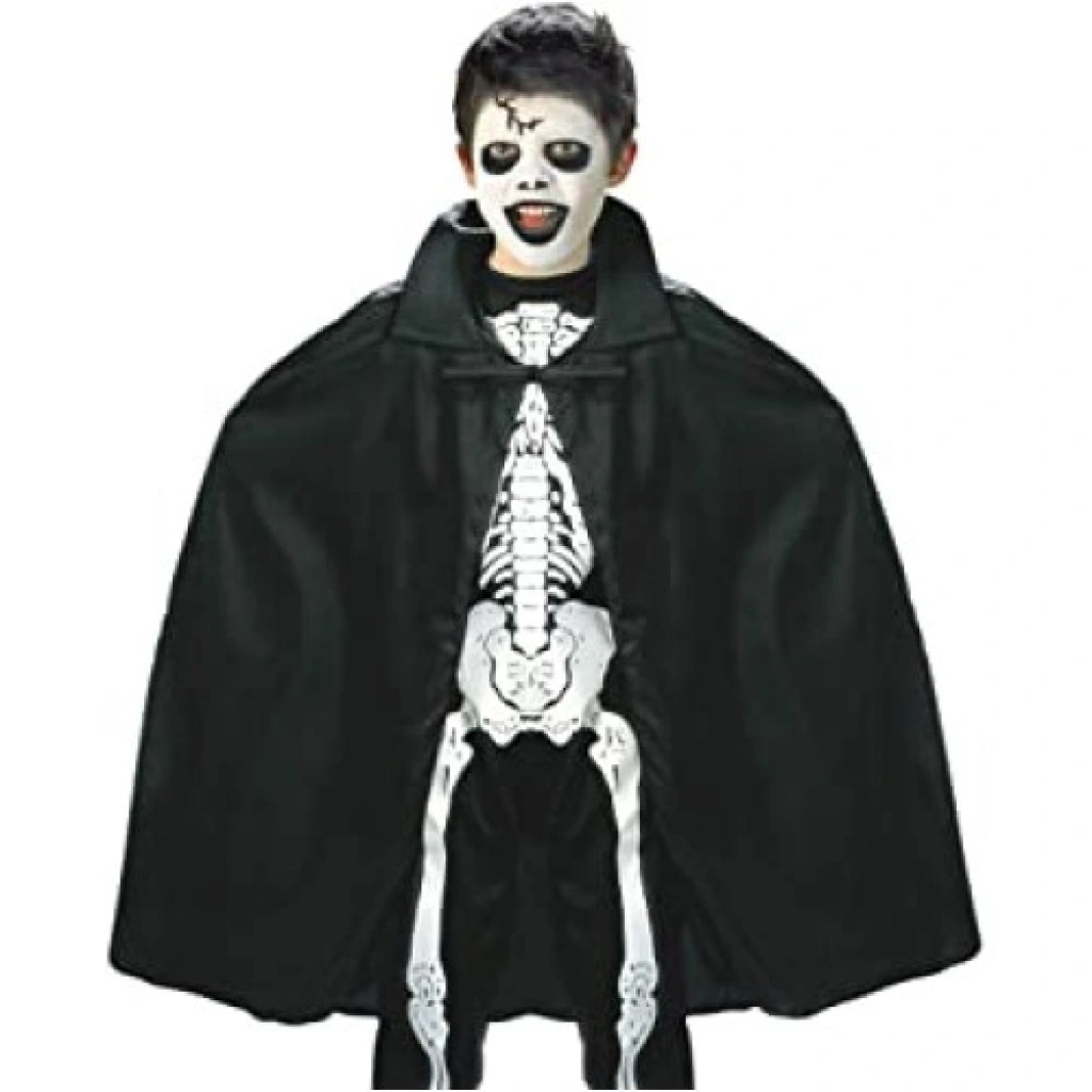 Siyah Renk Yakalı Halloween Pelerini | 90 cm Standart BoyKaranlık ve gizemli bir tarza bürünmek için en temel parça! Siyah Yakalı Halloween Pelerini, ikonik yakalı tasarımı ve gece karası rengiyle sizi saniyeler içinde bir vampire, büyücüye ya da gotik bir kahramana dönüştürür. 90 cm’lik boyuyla hem çocuklar hem de yetişkinler için çok yönlü bir kullanım sunan bu pelerin, kostümünüzün havasını anında değiştirecek.Öne Çıkan ÖzelliklerKlasik Yakalı Tasarım: Dik duran yaka detayı, yüze gizemli bir çerçeve kazandırır ve karakterinize dramatik bir asalet katar.İdeal Uzunluk (90 cm): Omuzdan aşağıya doğru olan 90 cm boyu; çocuklarda tam boy bir pelerin, yetişkinlerde ise şık bir ara boy pelerin görünümü sergiler.Hafif ve Akışkan Kumaş: Hareket ettikçe rüzgarda savrulan hafif kumaşı, sahne performanslarında veya yürüyüşlerde etkileyici bir görsel sunar.Kolay Bağlantı: Boyun kısmındaki pratik bağlama ipleri sayesinde her beden ölçüsüne göre kolayca ayarlanabilir ve kayma yapmaz.Unisex ve Çok Amaçlı: Hem erkeklerin hem de kadınların (ve çocukların) kullanımına uygun, sade ama güçlü bir tasarıma sahiptir.Kullanım AlanlarıCadılar Bayramı (Halloween): Klasik Drakula, vampir veya kara büyücü kostümlerinin ana tamamlayıcısı olarak.Okul Gösterileri ve Tiyatro: Kötü karakterleri veya gizemli figürleri canlandırırken sahneye derinlik katmak için.Temalı Partiler: "Karanlık Taraf", "Gotik Gece" veya "Süper Kahramanlar" konseptli davetlerde.Fotoğraf Çekimleri: Karanlık ve atmosferik dış mekan çekimlerinde modelin stilini güçlendirmek adına.Cosplay Etkinlikleri: Anime veya film karakterlerinin pelerinli versiyonlarını canlandırırken ekonomik ve etkili bir çözüm.Neden Bu Pelerini Seçmelisiniz?Zahmetsiz Kostüm: Sadece siyah kıyafetlerinizin üzerine takarak profesyonel bir kostüm etkisi yaratabilirsiniz.Kırışmaya Dayanıklı: Çantanızda taşıyabilir, partiye vardığınızda çıkarıp hemen takabilirsiniz; formunu kolayca korur.Geniş Yaş Aralığı: Tek bir ürünle hem çocuğunuzun okul müsameresini hem de kendi parti ihtiyacınızı karşılayabilirsiniz.Teknik Özellikler TablosuÖzellikDetayUzunluk90 cm (Omuzdan İtibaren)ModelDik Yakalı TasarımRenkSaf SiyahUyumÇocuk ve Yetişkin (Unisex)MateryalYumuşak ve Hafif Kumaş