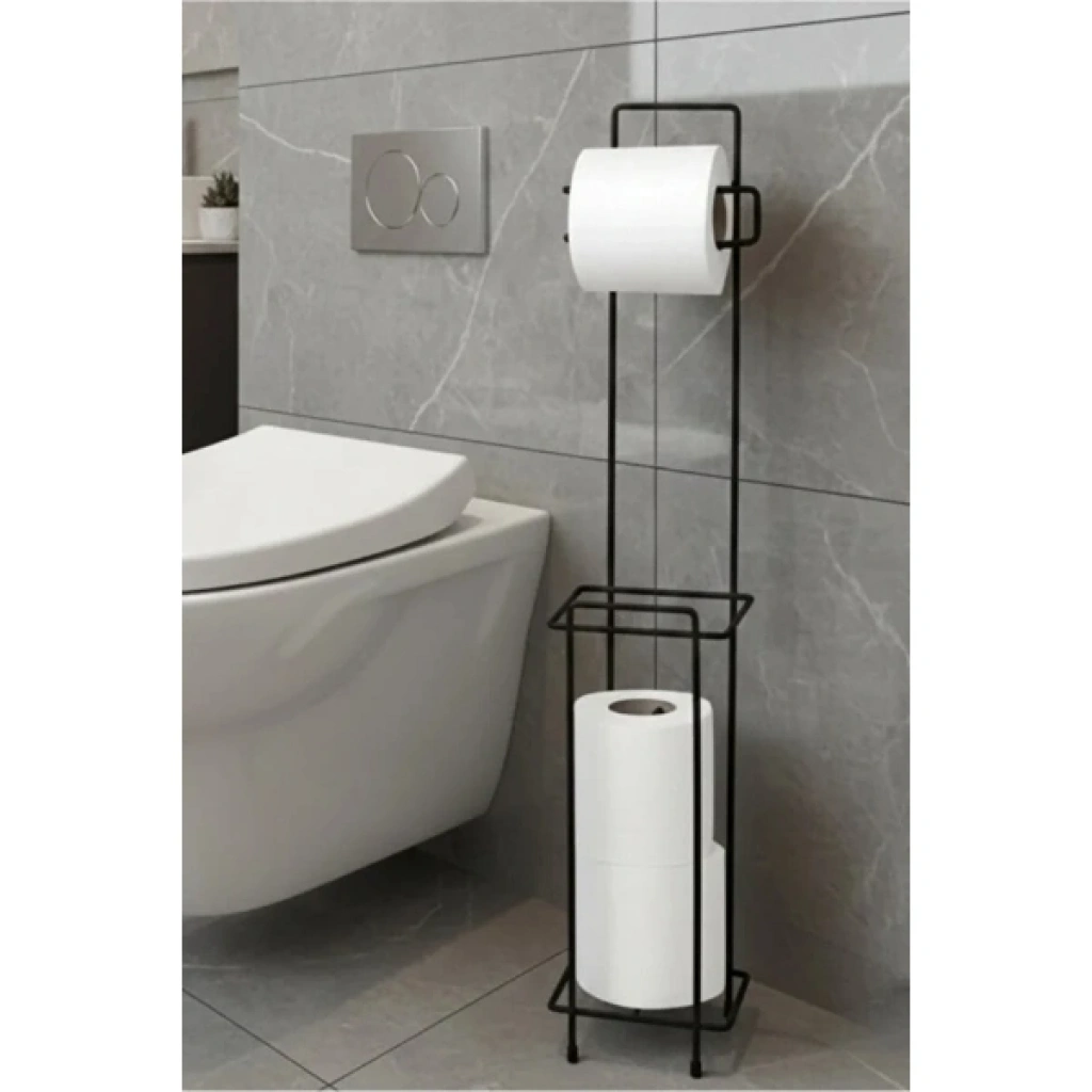 Siyah Standlı Yedek Hazneli Tuvalet Kağıtlığı
