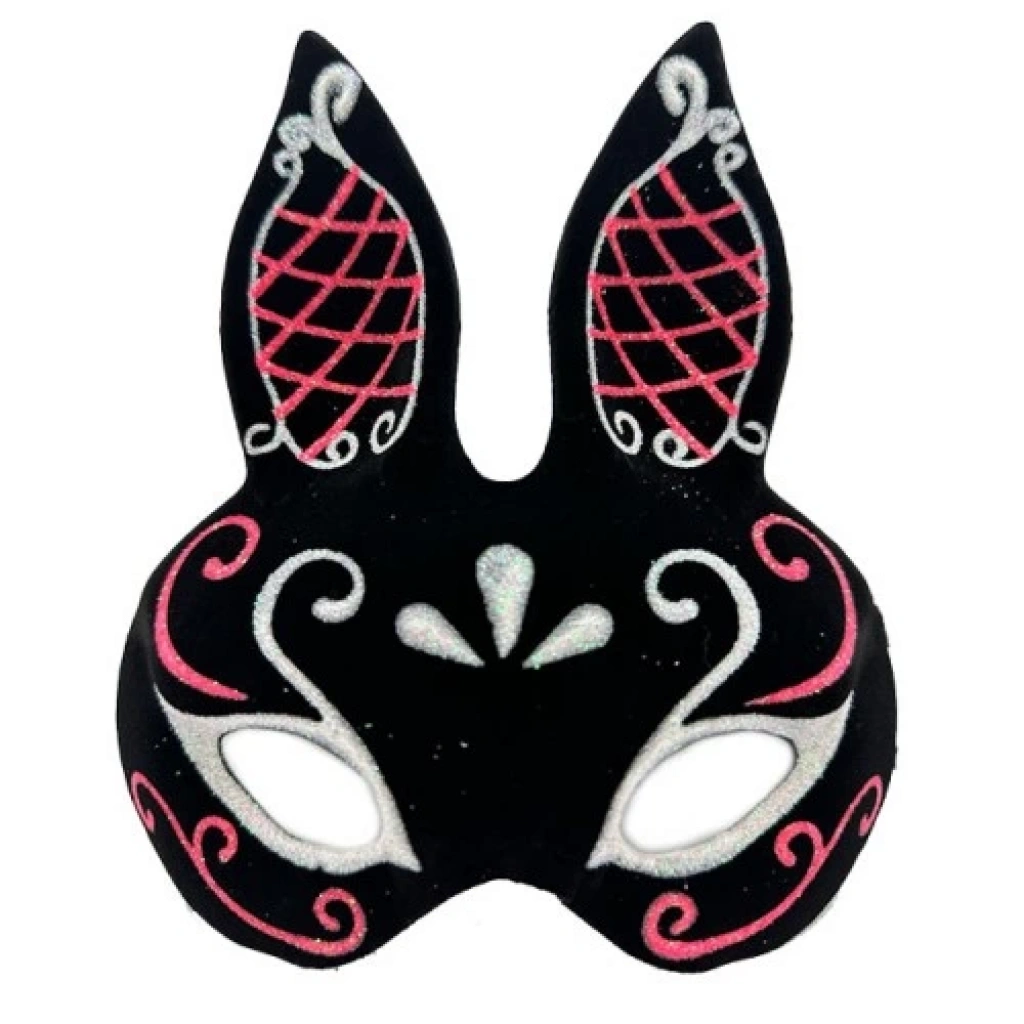 Siyah Süet Tavşan Maskesi Simli