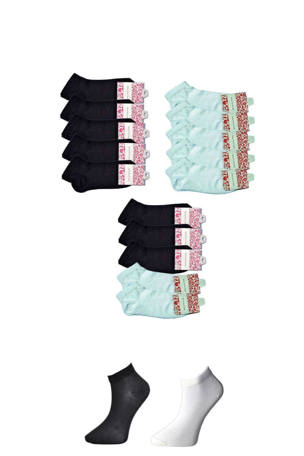 Siyah ve Beyaz Kadın Bilek Çorap 15 çift