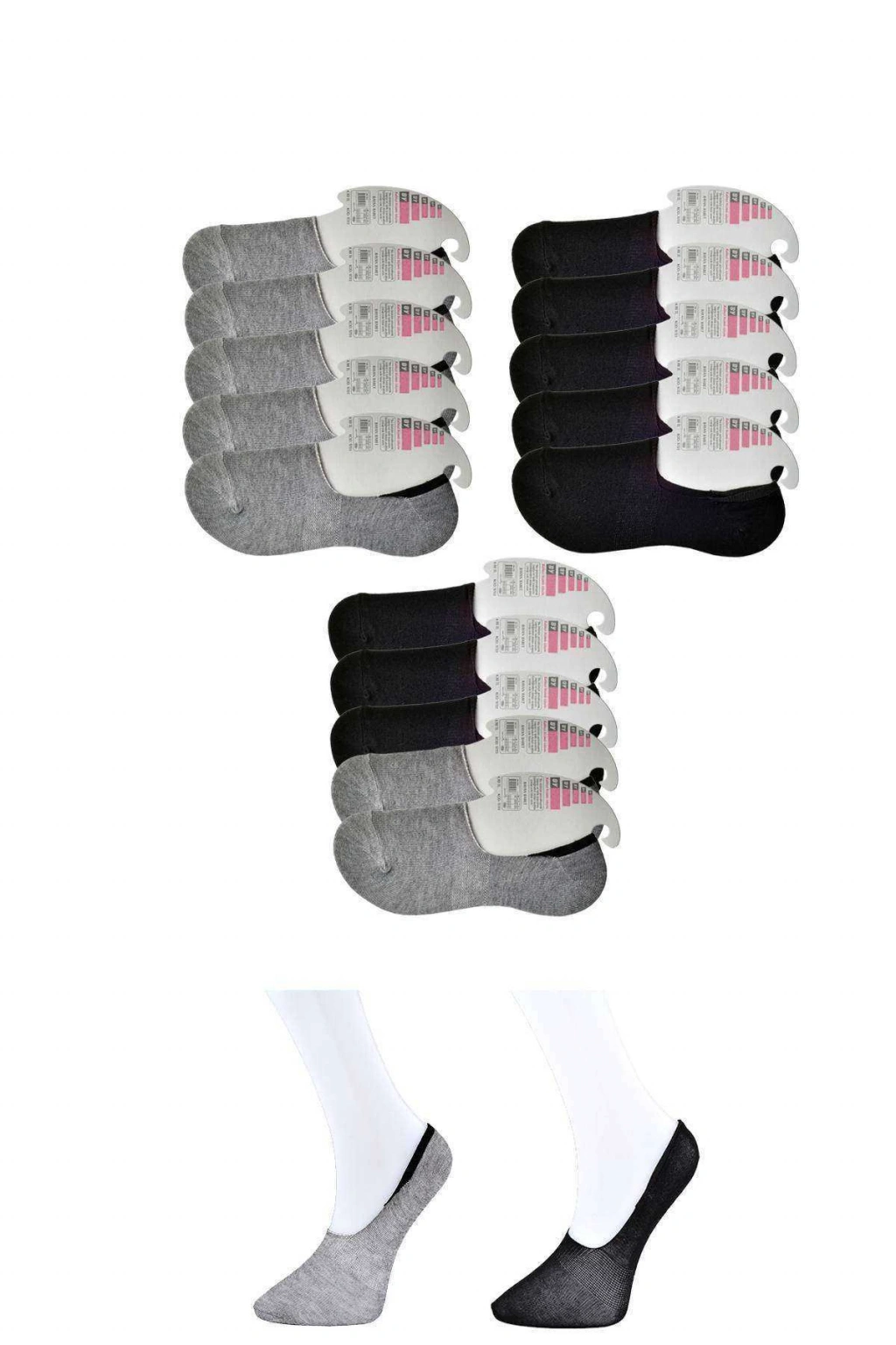 Siyah ve Gri Kadın Babet Çorap 15 çift