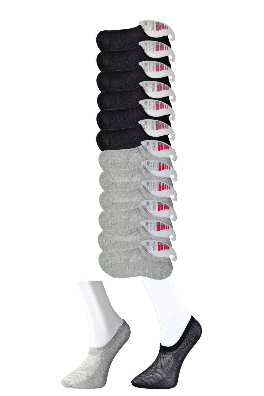 Siyah ve Gri Kadın Görünmez Çorap 12 çift