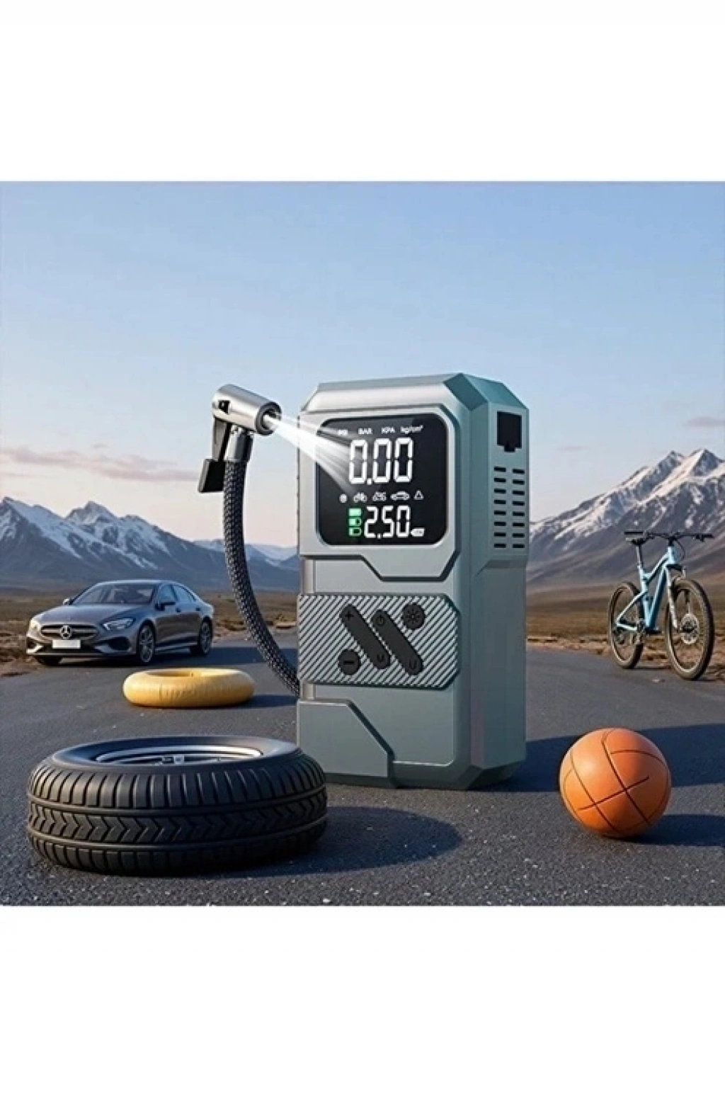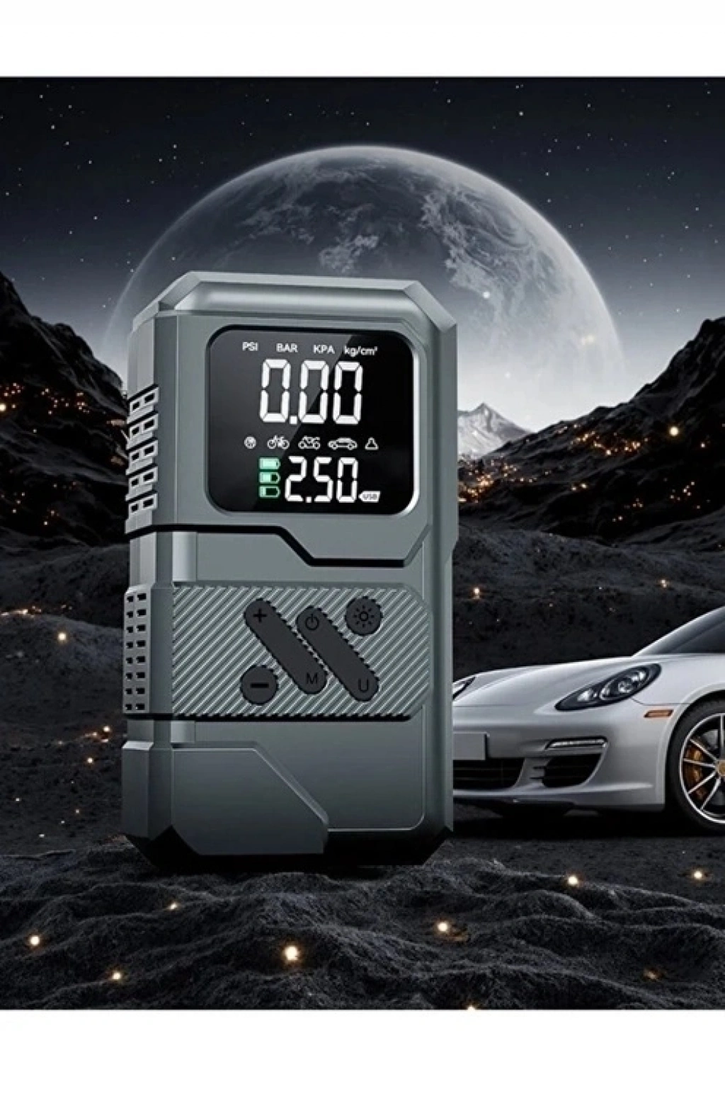 • St-9654 Şarjlı 10.000 Mah Taşınabilir Araç Hava Kompresörü Akü Takviyeli Dijital Ekranlı Işıklı