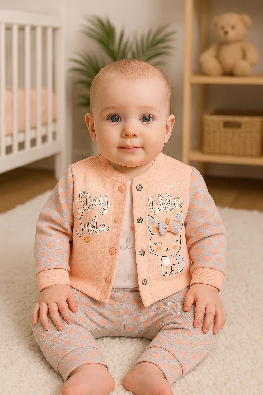 Stay Little Puan Desenli 3'lü Hırkalı Kız Bebek Takım