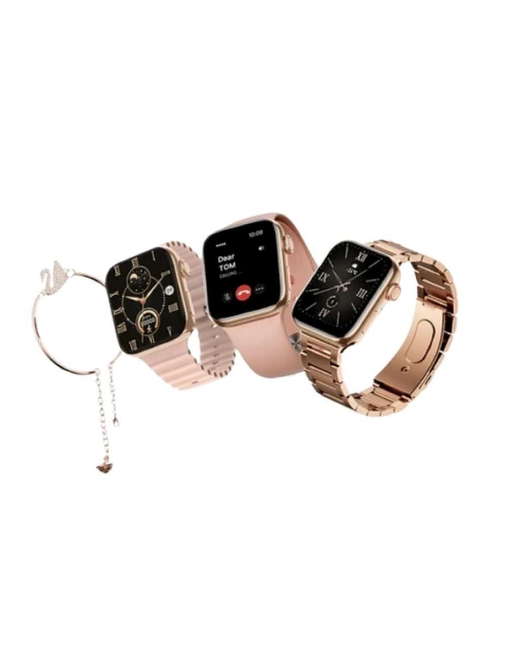 Şıklığı ve teknolojiyi bir araya getiren bu akıllı saat, 300 mAh kapasitesindeki bataryası sayesinde uzun süreli kullanım sunar. Günlük kullanımda tek şarjla günlerce performans alabilirsiniz.Sesli arama özelliği, telefonunuzu çıkarmanıza gerek kalmadan çağrıları doğrudan saat üzerinden cevaplamanıza imkân tanır. Adımsayar ve uyku takibi fonksiyonları ise kişisel sağlık ve fitness hedeflerinize ulaşmanızda sizi destekler.Su geçirmez tasarımı sayesinde saatinizi yağmurda, spor yaparken ya da terlediğiniz anlarda gönül rahatlığıyla kullanabilirsiniz. Hafif yapısı ve ergonomik tasarımı ile gün boyu bileğinizde varlığını hissettirmez.