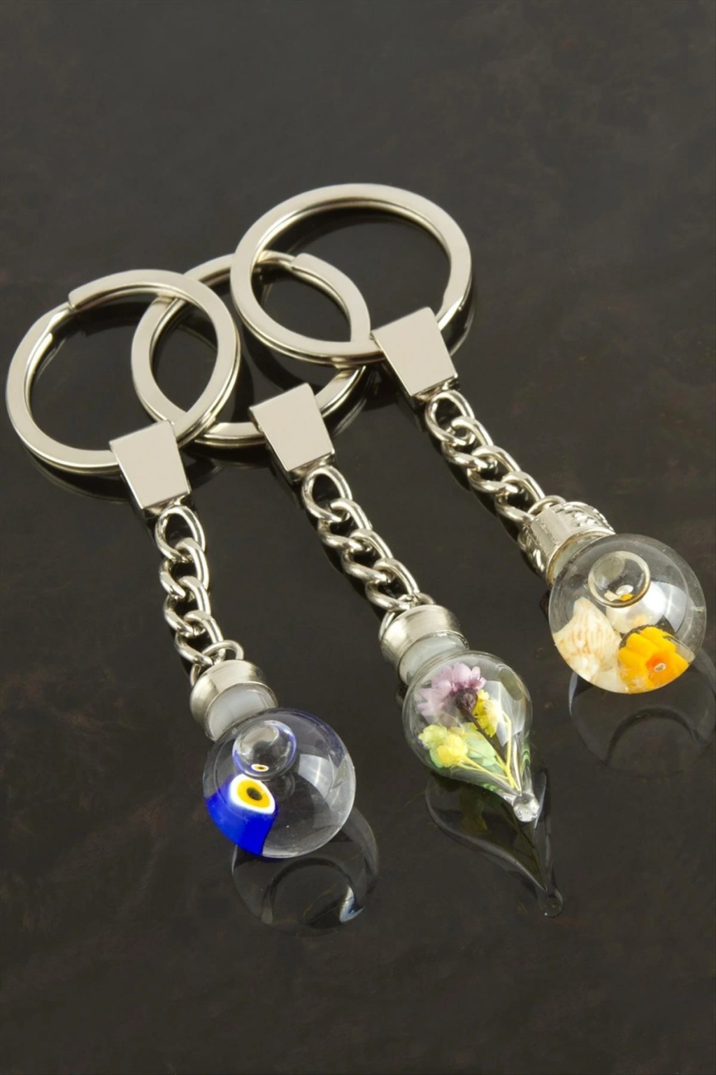Anahtarlık Ürün malzemesi cam ve metaldir. Ürün fanus cam içersine su ve boncuk aparatlardan eklenerek üretilmiştir. Ürün boyu topma boyu 8,5 cm ve fanus boyu 2,5 cmdir. Anahtarlık renkleri ve figürleri asortilidir. Siparişleriniz de karı şık olarak gönderilecektir.