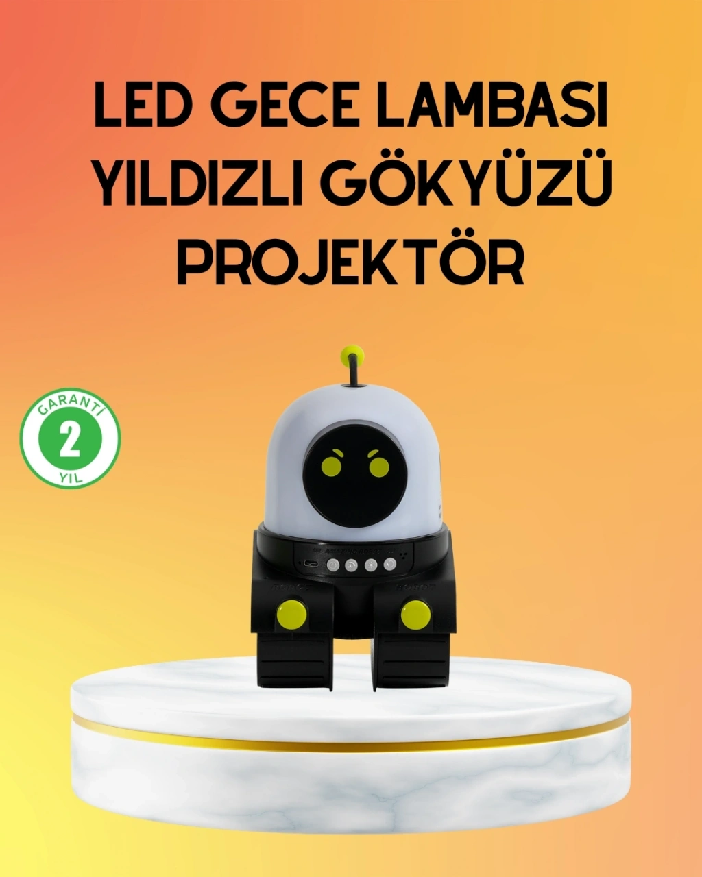 Sevimli robot tasarımı ile bu projektör, çocuk odalarına hem eğlence hem de rahatlatıcı bir ışık sunar. Yüksek çözünürlüklü projeksiyon, çocukların hayal gücünü geliştirir.Üç farklı ışık modu (sarı, beyaz, mavi) sayesinde ortamı değiştirebilir, uykuya geçişi kolaylaştırabilirsiniz. Yerleşik uyku müziği, sakinleştirici melodiler sunar.ABS malzeme, sağlamlık ve güvenlik sağlar. Uzun ömürlü LED teknolojisi ile 35.000 saat kullanım ömrüne sahiptir.