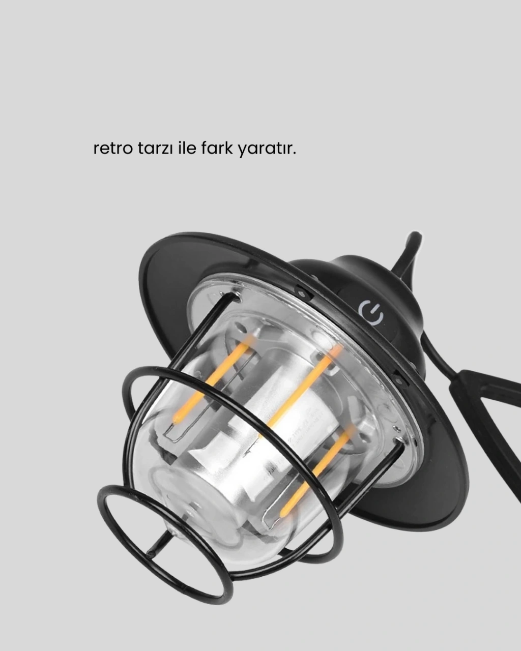 Outdoor yaşamı sevenlerin vazgeçilmez aksesuarlarından biri olan bu taşınabilir retro kamp ışığı, es görünümü ve dayanıklı yapısıyla öne çıkar. Çam konisi şeklindeki tasarımı, klasik kamp lambalarından farklı olarak dekoratif ve sıcak bir aydınlatma sunar. Gece lambası fonksiyonu sayesinde çadır içinde huzurlu bir ortam yaratır; göz yormayan yumuşak LED ışığı gece boyunca zarif bir aydınlatma sağlar.Bu lambanın en büyük avantajlarından biri hafif ve kolay taşınabilir olmasıdır. Kamp çantasına, sırt çantasına veya el bagajına rahatlıkla sığar. Açık hava etkinliklerinde, kamp alanlarında, yürüyüşlerde veya acil durumlarda hızlıca kullanılabilir. Minimal ve kompakt tasarımı, hem taşıma kolaylığı hem de pratik kullanım sağlar.Güçlü bataryası sayesinde uzun süreli aydınlatma sunar. Büyük kapasiteli pil yapısı, sık şarj gerektirmez ve uzun outdoor aktivitelerinde bile kesintisiz ışık sağlar. Bu özellik, özellikle elektriğe erişimin kısıtlı olduğu bölgelerde büyük kolaylık sağlar. Çadır içinde gece boyu yumuşak bir aydınlatma sunarak rahat uyku ortamı sağlar.Su geçirmez dış yüzeyi, lambayı yağmur ve nemden korur. Açık havada karşılaşılabilecek çiy, sis, yağmur gibi zorlu hava koşullarında güvenle kullanılmasını mümkün kılar. Böylece hem kamp hem piknik hem de balıkçılık gibi aktivitelerde ideal bir yardımcı haline gelir.Retro görünümü sayesinde yalnızca outdoor etkinliklerde değil, ev dekorasyonunda da kullanılabilir. Balkon, bahçe, teras, yatak odası veya çocuk odası gibi alanlarda sıcak bir ambiyans oluşturur. Nazik ışığı göz yormaz ve gece lambası olarak mükemmel bir kullanım sunar.Hem es hem fonksiyonel özellikleri bir araya getiren bu kamp lambası; açık hava aktivitelerinde güvenilir bir ışık kaynağı arayanlardan dekorasyon tutkunlarına kadar geniş bir kullanıcı kitlesine hitap eden ideal bir üründür.