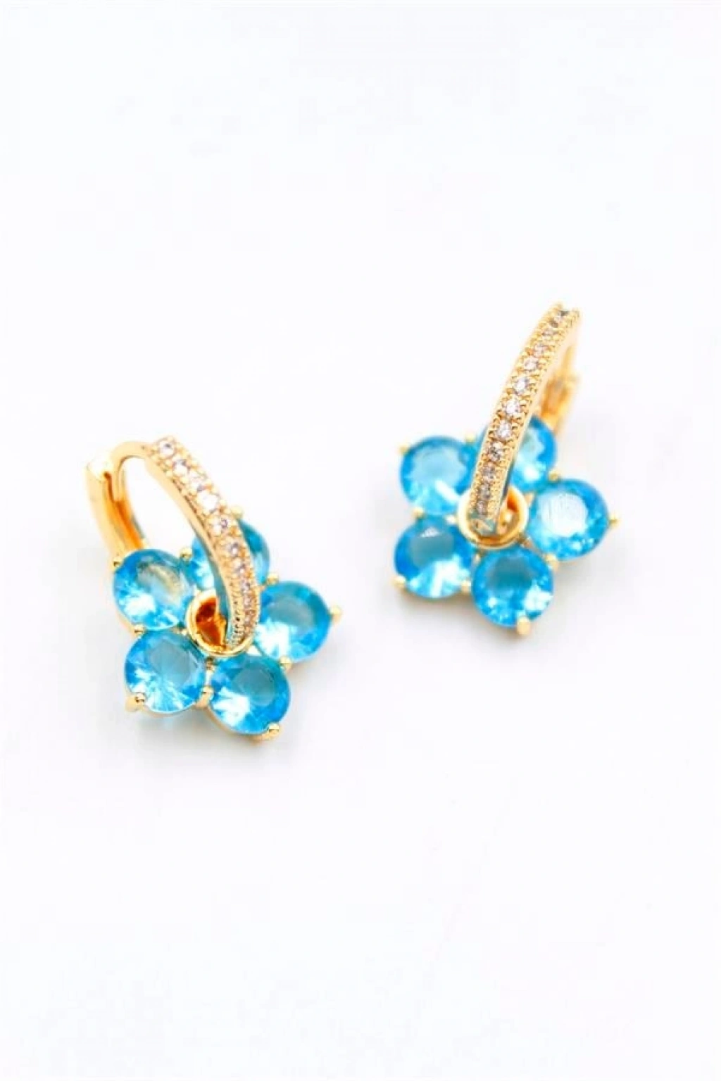 Taşlı Çiçek Küpe - Mavi