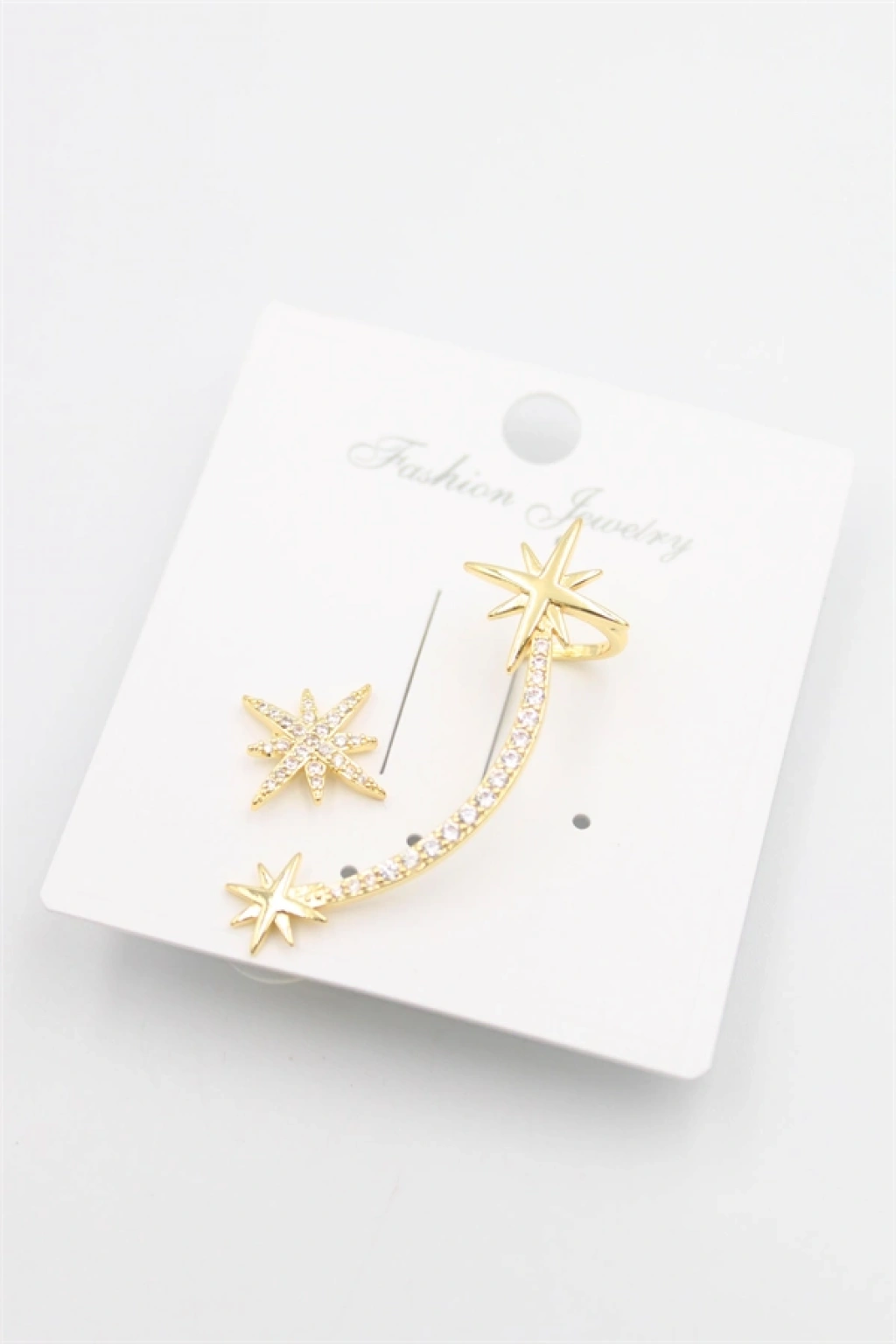 Taşlı Çiçek Kıkırdak Küpe - Gümüş