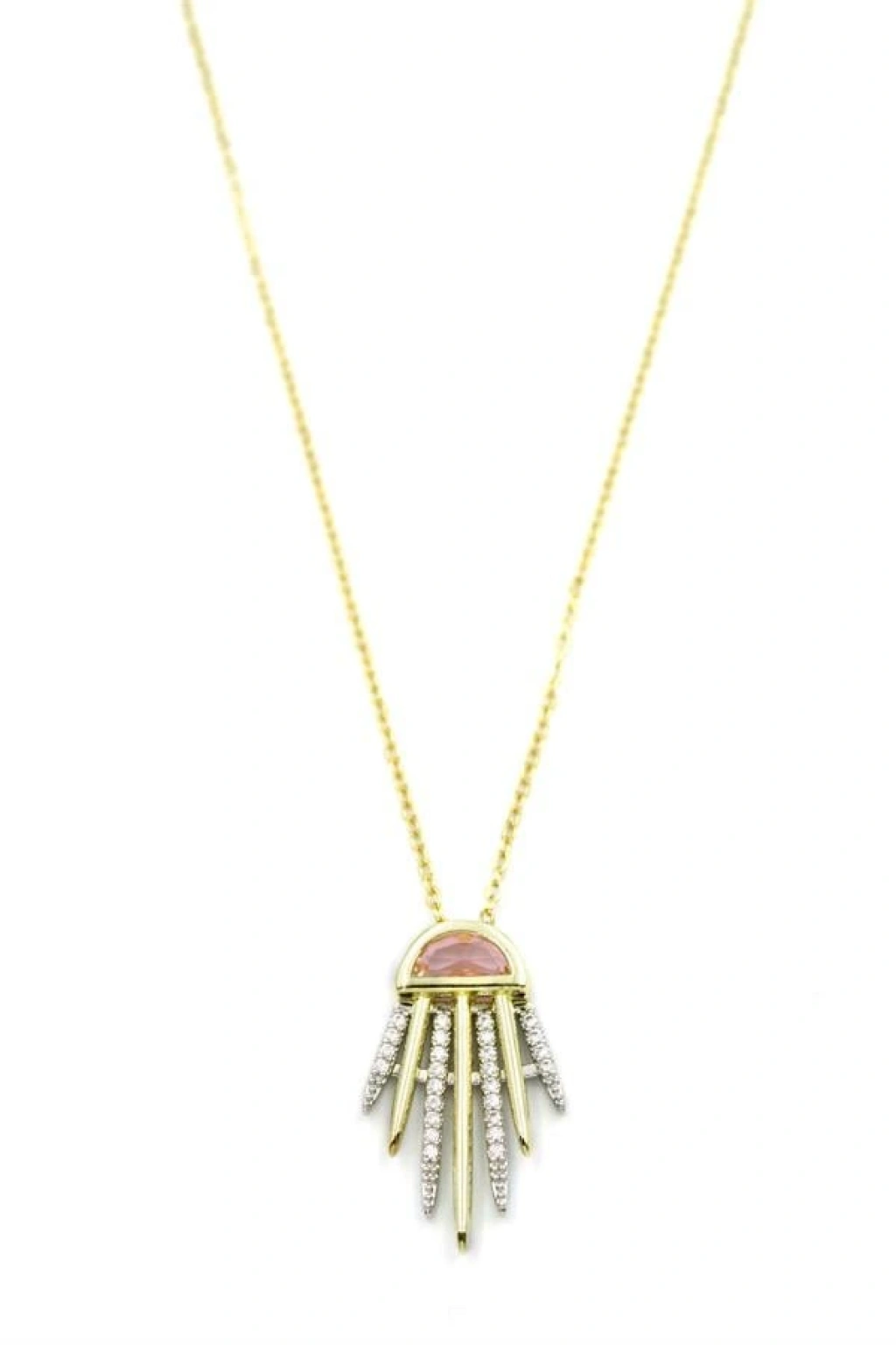 İncili Etnik Desen Kapaklı Kolye - Pembe