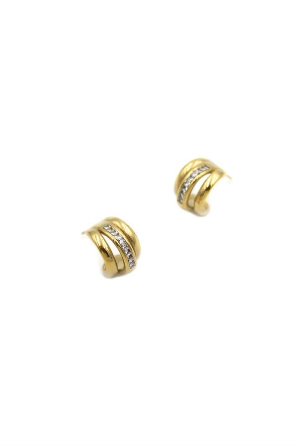 Büyük Baget Taşlı Çelik Küpe - Altın