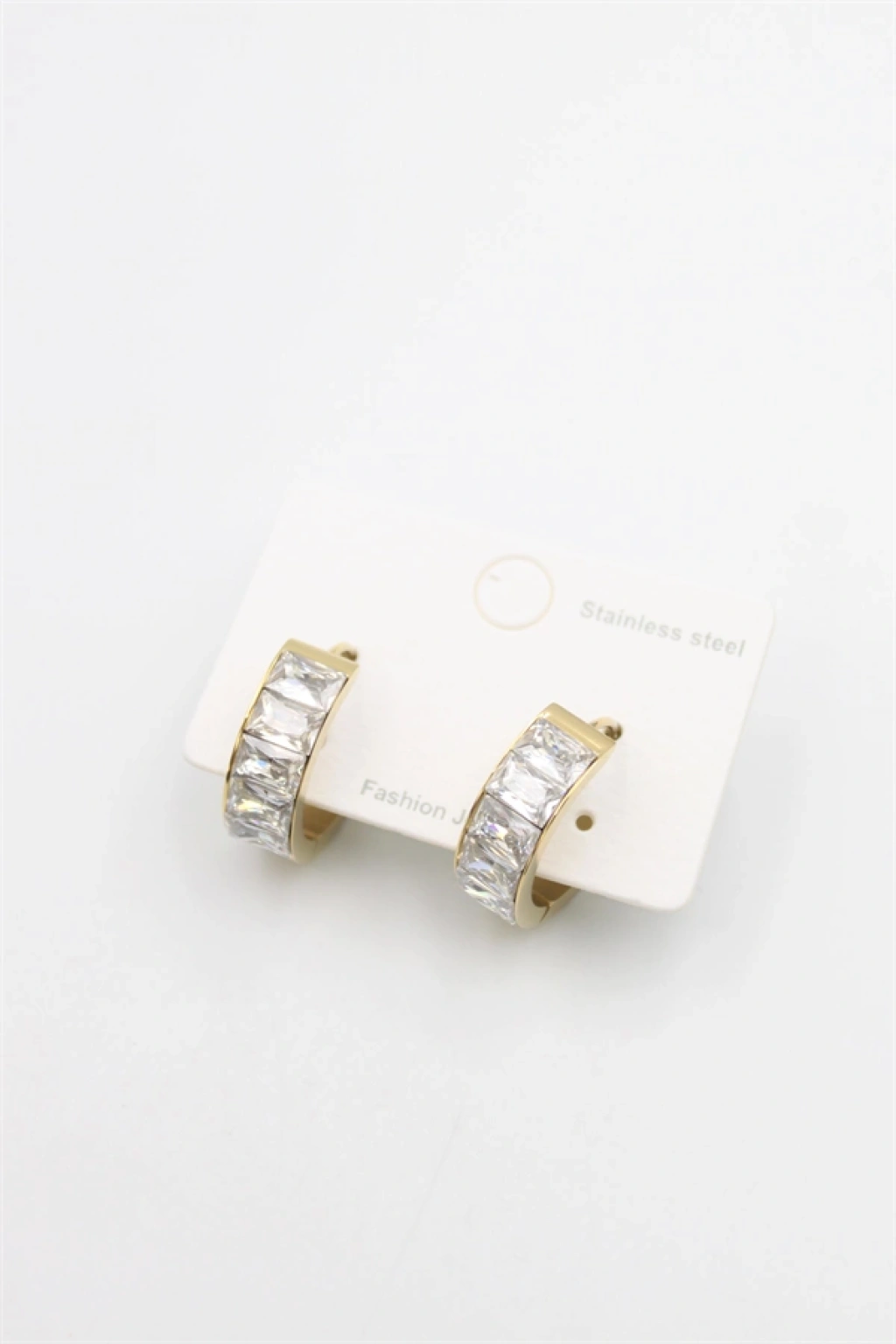 Büyük Baget Taşlı Çelik Küpe - Altın