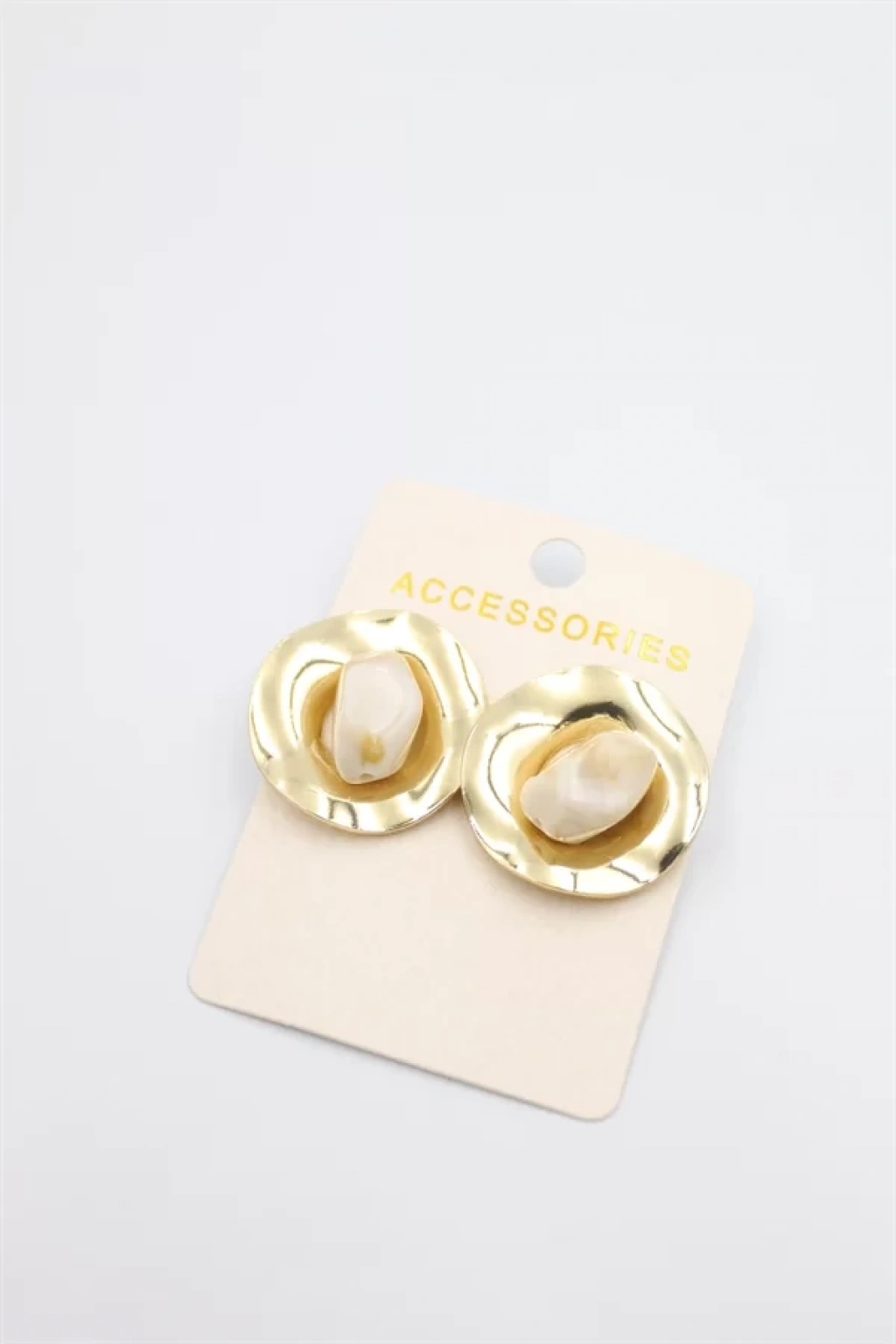 Taşlı Metal Küpe - Krem