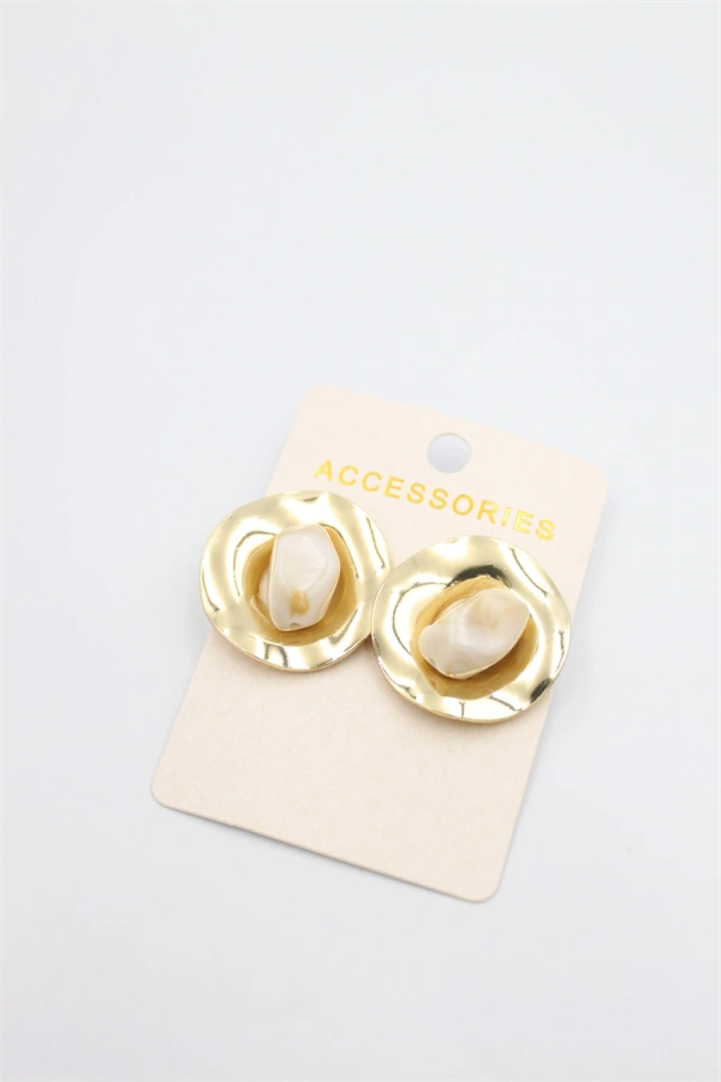 Taşlı Metal Küpe - Krem
