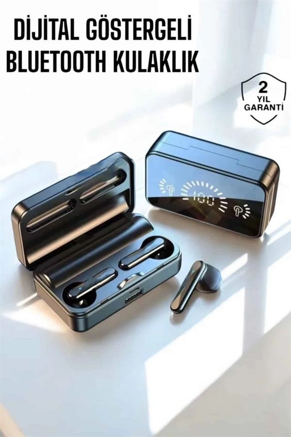 Yüksek Performanslı Bluetooth Kulaklık - Kesintisiz Müzik ve Konuşma DeneyimiBluetooth 5.0 teknolojisiyle donatılmış bu kulaklıklar, müzik dinlerken veya telefon görüşmelerinde size kesintisiz bir deneyim sunar. Çift dijital gösterge sayesinde kulaklıklarınızın pil seviyesini kolayca takip edebilirsiniz. 5-6 gün boyunca şarj edilmeden kullanım sağlayan uzun pil ömrü, sizi sürekli şarj etme zahmetinden kurtarır. Ayrıca, şarj kutusu 2000mAh kapasitesiyle kulaklıklarınızı birden fazla kez hızlıca şarj eder.Gelişmiş Ses ve Gürültü Önleme Teknolojisi ile Net İletişimKulaklıklar, güçlü bass özelliğiyle zengin bir ses deneyimi sunarken, aktif gürültü önleyici teknoloji sayesinde dış dünyadan gelen gürültüyü etkili bir şekilde engeller. Bu özellik, telefon görüşmelerinizde karşı tarafa daha net bir ses iletmenizi sağlar, özellikle gürültülü ortamlarda ses kalitesinden ödün vermez. Sesli komut özellikleriyle müzik çalma/durma ve çağrı cevaplama gibi işlemleri kolayca kontrol edebilirsiniz.Suya Dayanıklı ve Ergonomik Tasarım ile Konforlu KullanımIPX5 suya dayanıklılık özelliği ile terlemeye ve yağmura karşı korumalıdır, bu sayede spor yaparken veya dış mekanlarda kullanım için idealdir. Hafif ve ergonomik yapısı, uzun süreli kullanımlarda bile rahatlık sunar. Şık siyah tasarımı, her ortamda şıklığınızı yansıtır. Bu kulaklıklar, müzik dinlerken veya konuşurken konforlu bir deneyim sağlamak için mükemmel bir seçimdir.