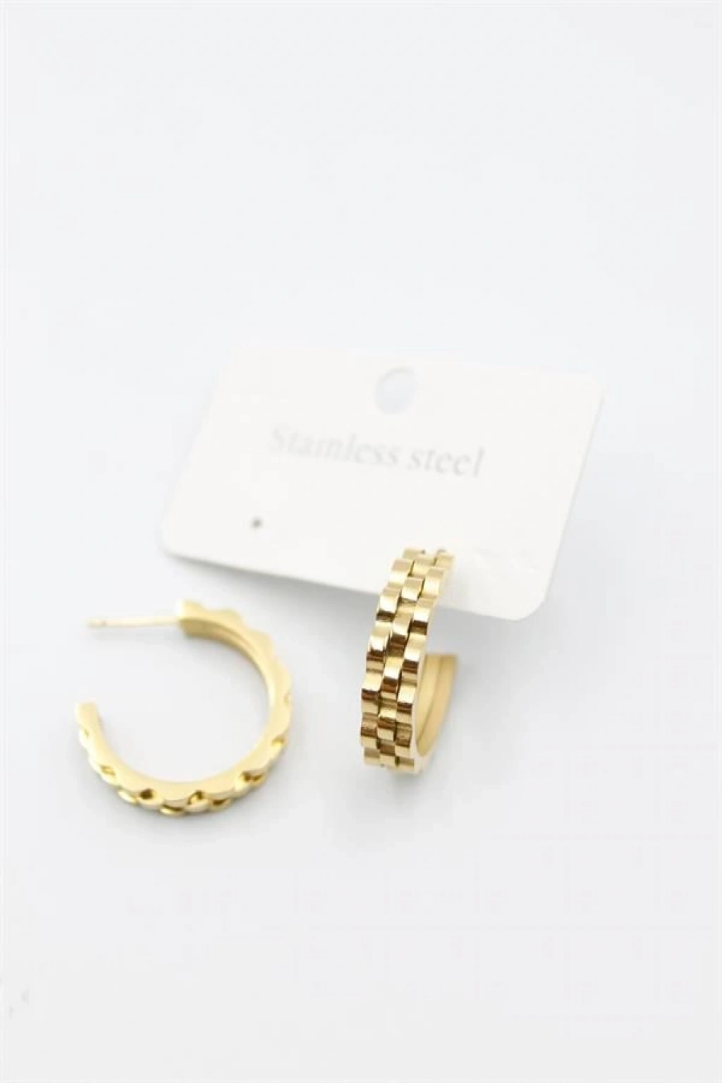 Büyük Baget Taşlı Çelik Küpe - Altın