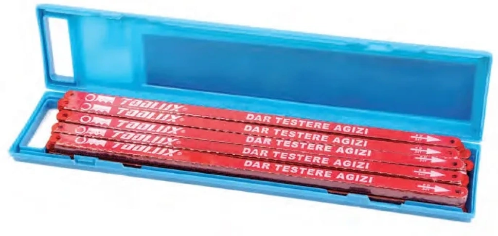 Toolux Dar Demir Testere Ağzı Çift Taraflı - 5 Adet ile demir, alüminyum ve diğer metal malzemeleri kolaylıkla kesebilirsiniz. Yüksek kaliteli çelikten üretilen bu testere ağızları, dayanıklılık ve keskinlik konusunda sizi yarı yolda bırakmaz.