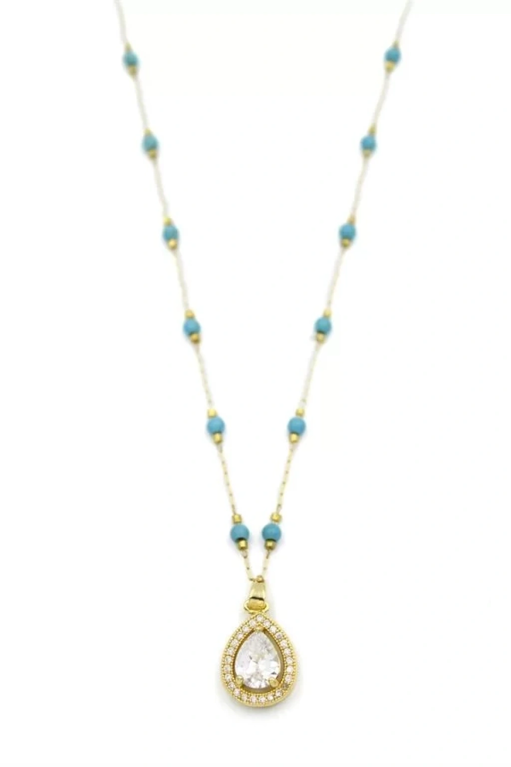 Turkuaz Boncuklu Kolye - Altın