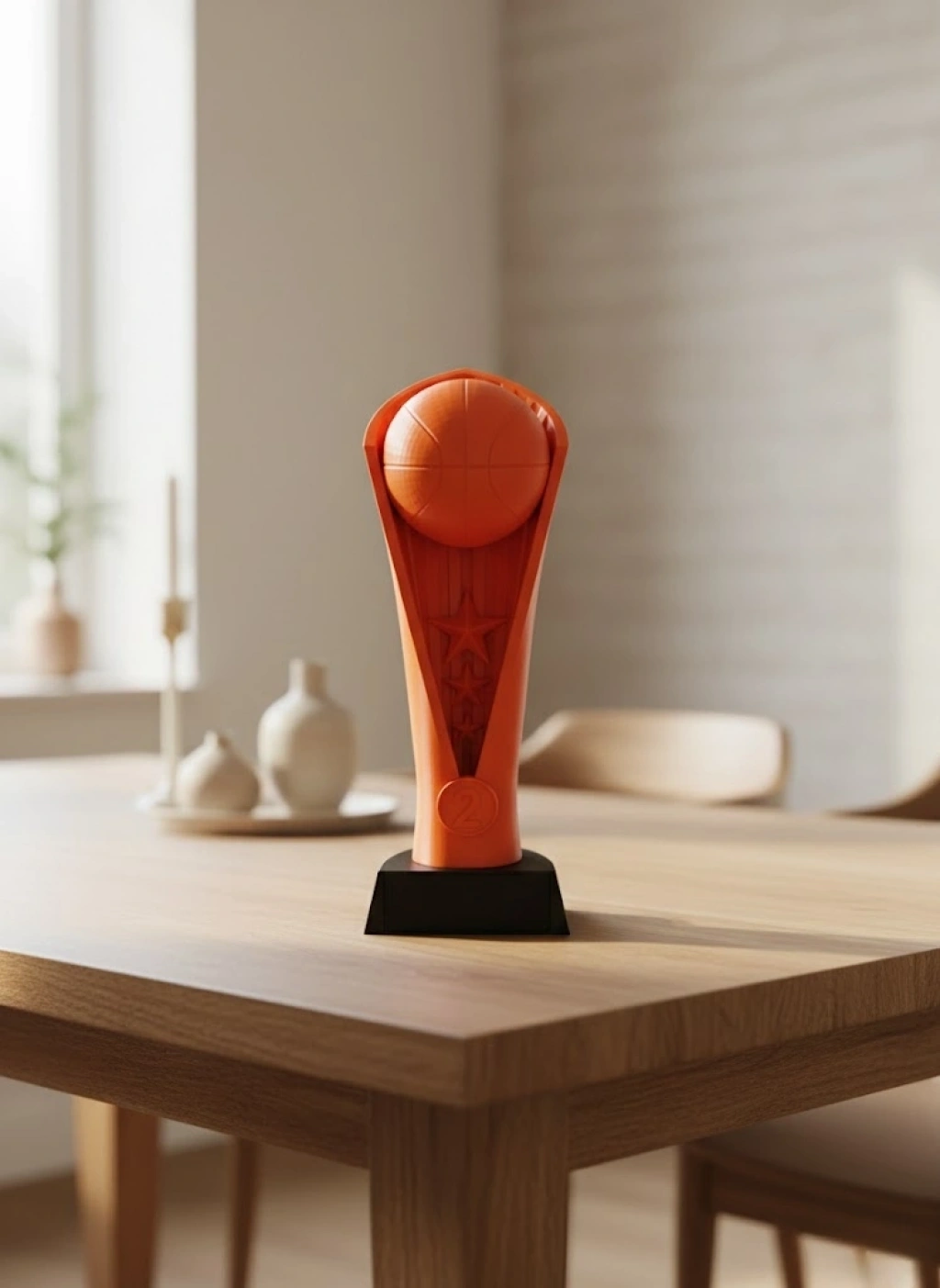 Turuncu Kupa 23 cm, basketbol temalı modern tasarımıyla hem spor severlere hem de dekorasyon tutkunlarına hitap eden özel bir masaüstü biblosudur. Üst kısmındaki basketbol topu detayı ve yıldız motifli gövdesi, ona dinamik ve dikkat çekici bir görünüm kazandırır. Dayanıklı malzemeden üretilmiş olup renk canlılığını uzun süre korur. Ev, ofis, genç odası, spor salonu resepsiyonu veya kupa vitrini gibi alanlarda dekoratif amaçla rahatlıkla kullanılabilir. Alt kısmındaki geniş platform, biblonun dengeli durmasını sağlayarak güvenli kullanım sunar. Koleksiyon yapmak isteyenlere, spor etkinliklerinde sembolik ödül olarak dağıtmak isteyenlere veya basketbol tutkunu sevdiklerine özel bir hediye alternatifi olarak mükemmeldir.