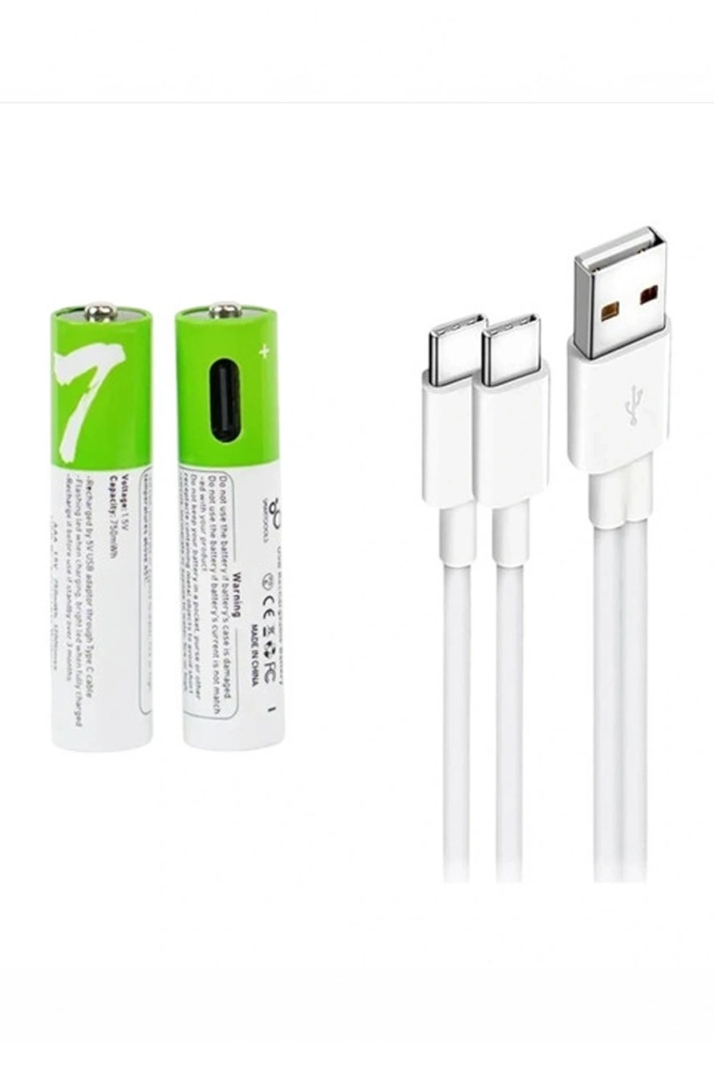 • Type-c Şarjlı 800mwh 1.5v Şarj Edilebilir 2’li Aaa İnce Pil - Lityum Iyon Batarya
