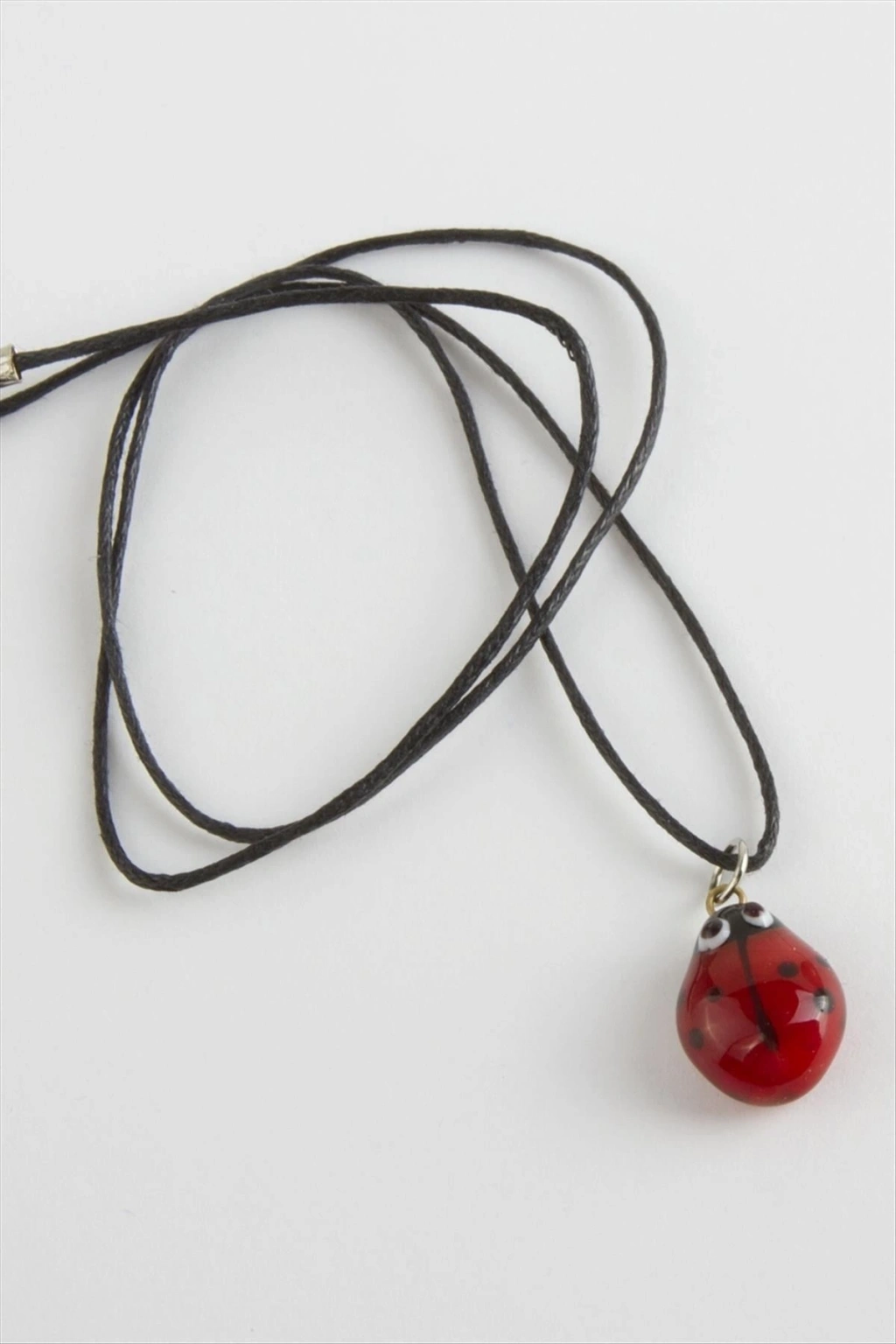Cam Kolye; Kordonu vinlex deridir. Ürün ustalarımız tarafından atölyemizde tek tek el işçiliği ile üretilmektedir. İmalatımız da yerli cam ve orijinal italyan cam kullanılmaktadır. Cam ürünlerinde sanatsal bir işçilikle çalışılmaktadır. Ürün cam boyu 1,5 cm ve ip boyu 45 cmdir.