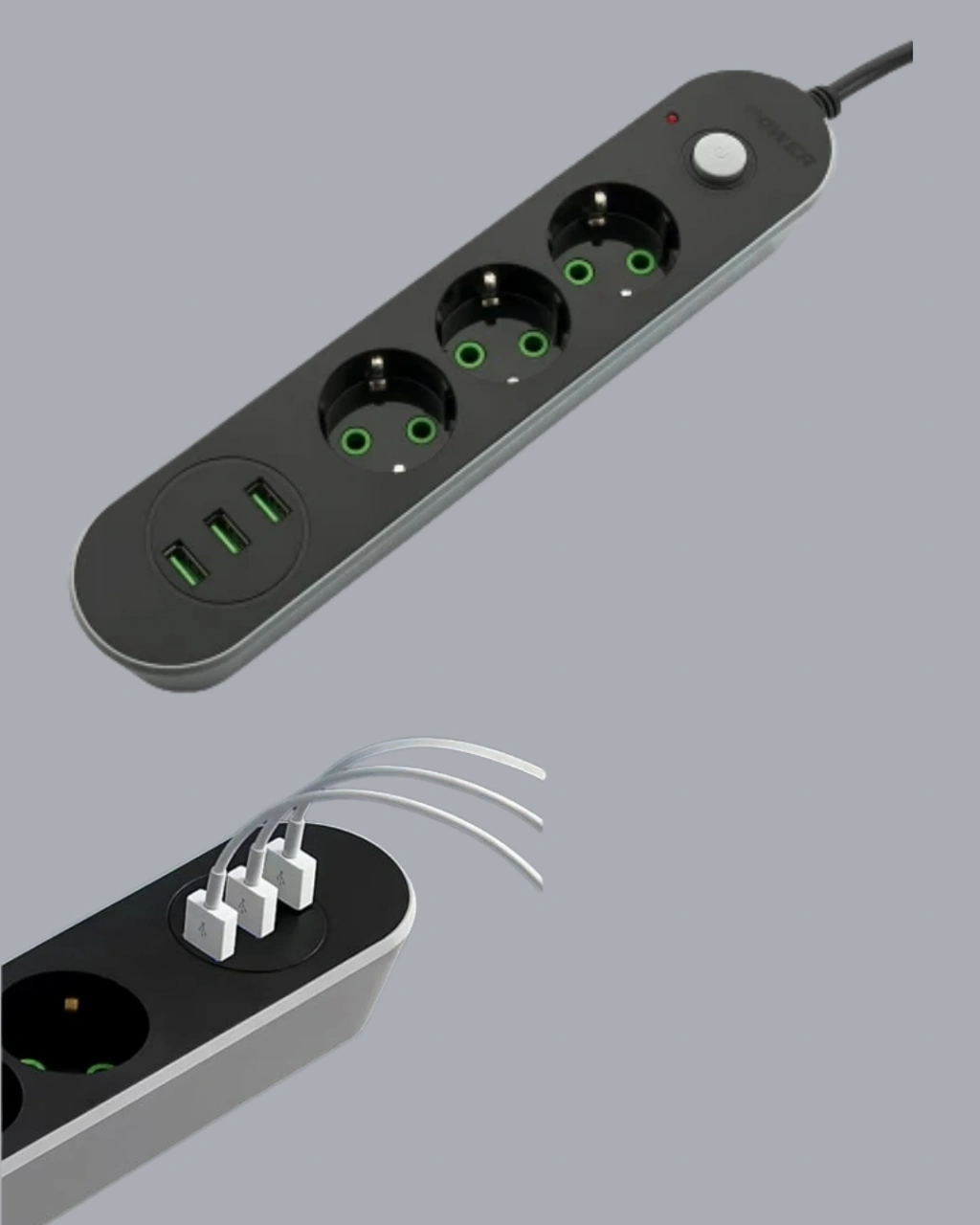 USB yuvalı anahtarlı üçlü priz, ev ve ofislerde birden fazla cihazı aynı anda güvenli bir şekilde kullanmanıza olanak tanır. Üç adet priz çıkışı ve üç adet USB portu sayesinde telefon, tablet, bilgisayar, televizyon ve diğer elektronik cihazlarınızı aynı anda çalıştırabilir ve şarj edebilirsiniz. USB portları, cihazlarınızı otomatik olarak tanıyarak 2.0A değerinde hızlı şarj desteği sağlar. Anahtar özelliği sayesinde prizi kapatıp açabilir, gereksiz elektrik kullanımını önleyebilirsiniz. Akım koruma özelliği, ani voltaj değişimlerine karşı cihazlarınızı güvenle korur. Dayanıklı malzemeden üretilmiş olup uzun ömürlü kullanım sağlar. 2 metre kablo uzunluğu sayesinde geniş kullanım alanı sunar ve cihazlarınıza rahat erişim imkânı tanır. Kompakt ve şık tasarımıyla dekorasyonunuza uyum sağlar.