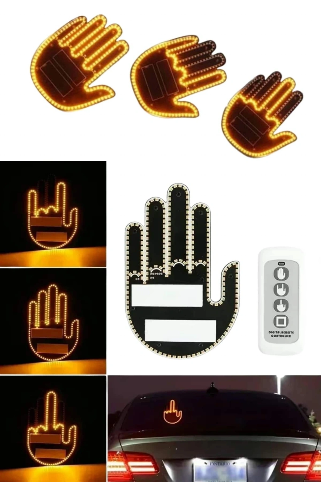• Uzaktan Kumandalı El Orta Parmak Led Araç Camına Özel