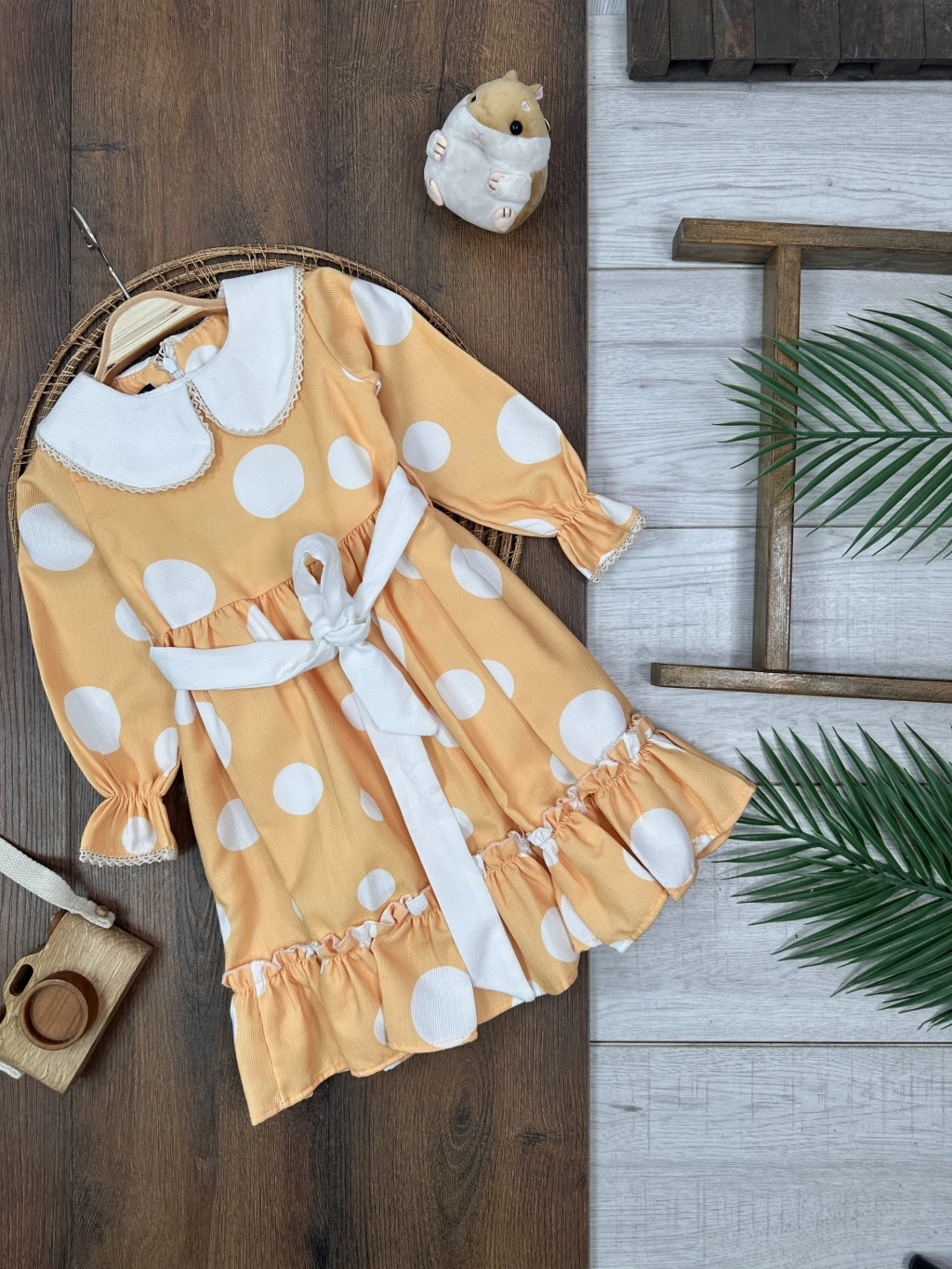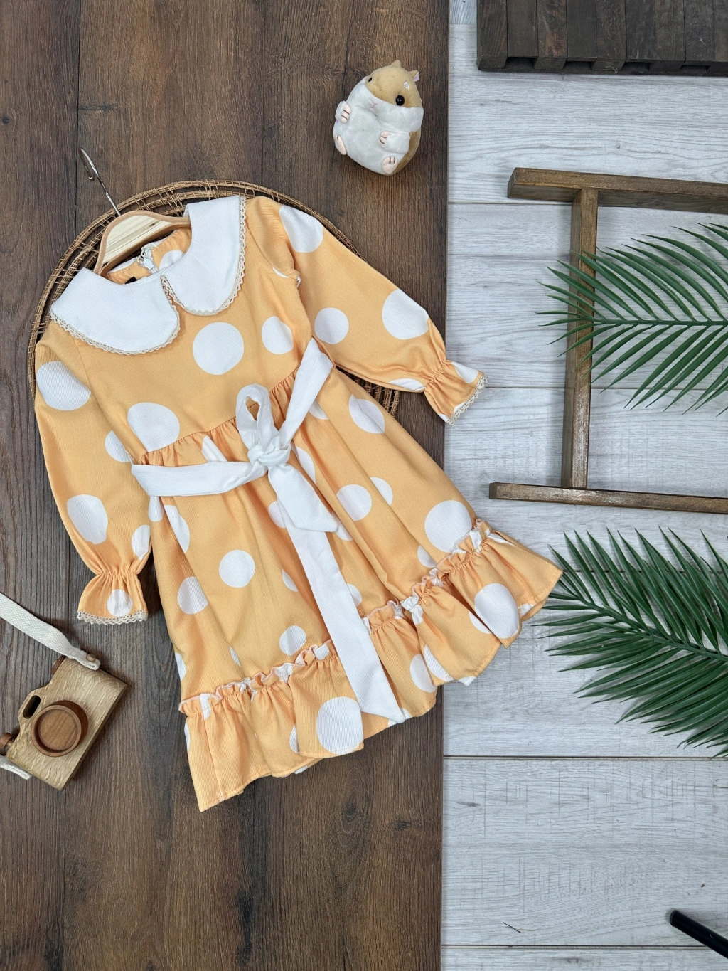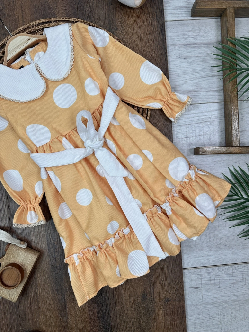 TRUNCU RENK YARIM KOLLU KIZ ÇOCUK EKOSELİ BEBE YAKA BEBEK ETEK BLUZ ELBİSE