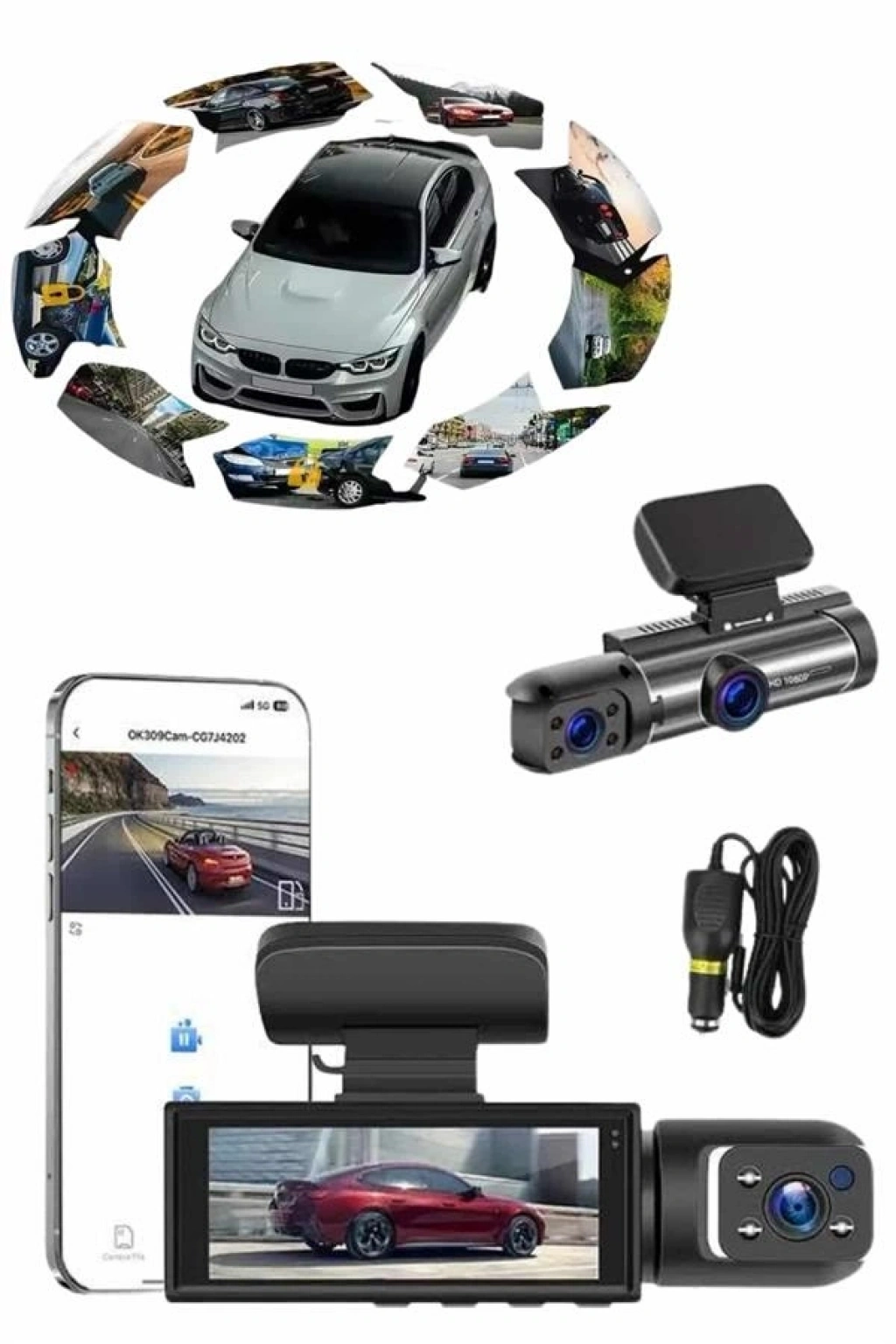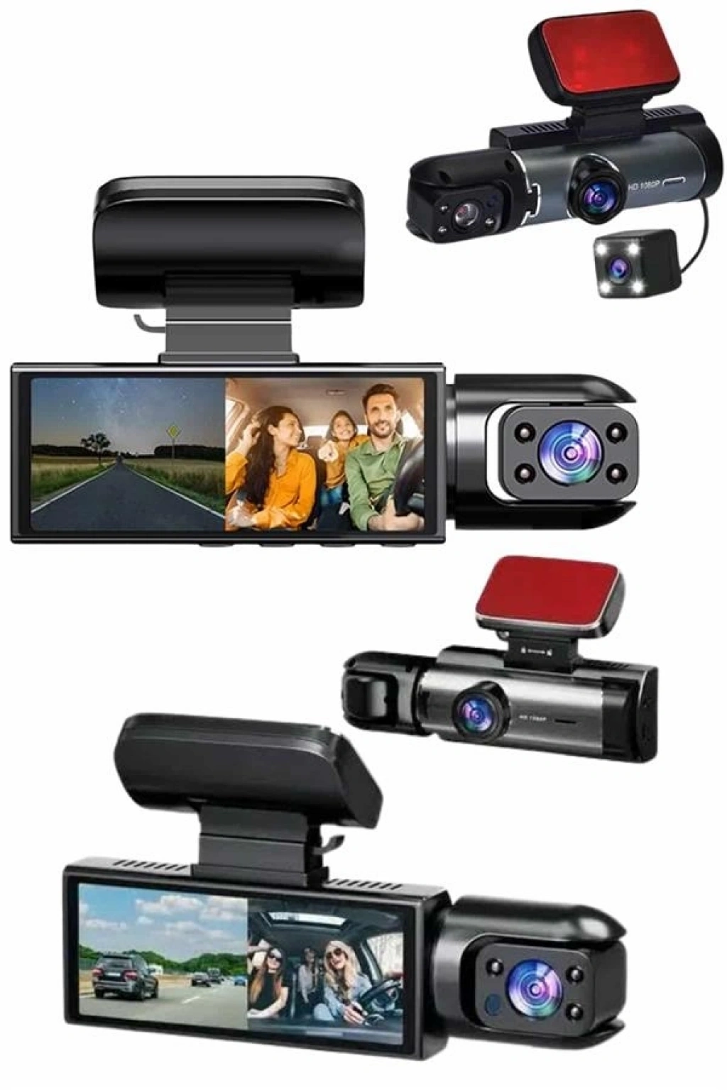 Bu gelişmiş araç içi kamera sistemi, sürüş güvenliğini ve kayıt ihtiyaçlarını en üst düzeye taşımak için tasarlanmıştır. Sistemde yer alan ön, iç ve arka olmak üzere üç kamera aynı anda kayıt alabilir, böylece hem yol hem yolcu hem de araç arkası her an izlenebilir durumda olur. 1080P Full HD çözünürlüğe sahip ön kamera, net ve keskin görüntüler sunarken; 720P çözünürlüğündeki iç ve arka kameralar, ek güvenlik sağlar. Geniş 170 derece görüş açısı, tüm şeritleri kapsamaya yardımcı olur ve kör nokta riskini minimize eder.2 inç IPS ekranı ile kayıtlar anında izlenebilir. Geri vitese geçildiğinde, park çizgileri otomatik olarak ekrana yansır ve arka kamera devreye girer, bu da park manevralarını büyük ölçüde kolaylaştırır. Dahili G sensörü sayesinde araç sarsıldığında, çarpışmalarda veya darbe anında sistem otomatik olarak kritik görüntüleri korumaya alır. Hareket algılama fonksiyonu ise araç park halindeyken dahi çevresel aktiviteleri algılayarak kayıt yapar.Cihaz, 64 GB’a kadar hafıza kartı desteği sunar ve döngüsel kayıt özelliği sayesinde bellek dolduğunda eski verilerin üzerine yeni kayıtlar otomatik olarak yazılır. Ergonomik ve kompakt tasarımı sayesinde görüş alanını engellemeden kolayca monte edilebilir. Kutu içeriğinde kamera, sabitleyici yapışkan at, araç çakmaklık şarj cihazı ve kullanım kılavuzu yer alır. Güvenlik, kayıt ve sürüş konforunu bir arada arayan kullanıcılar için ideal bir teknolojik çözümdür.
