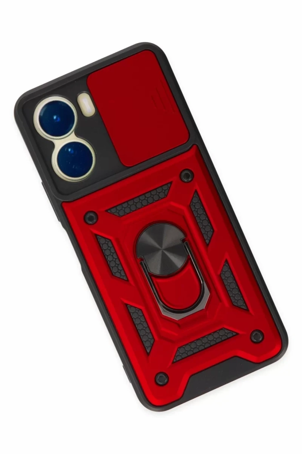 Vivo Y16 Kılıf Pars Lens Yüzüklü Silikon - Kırmızı