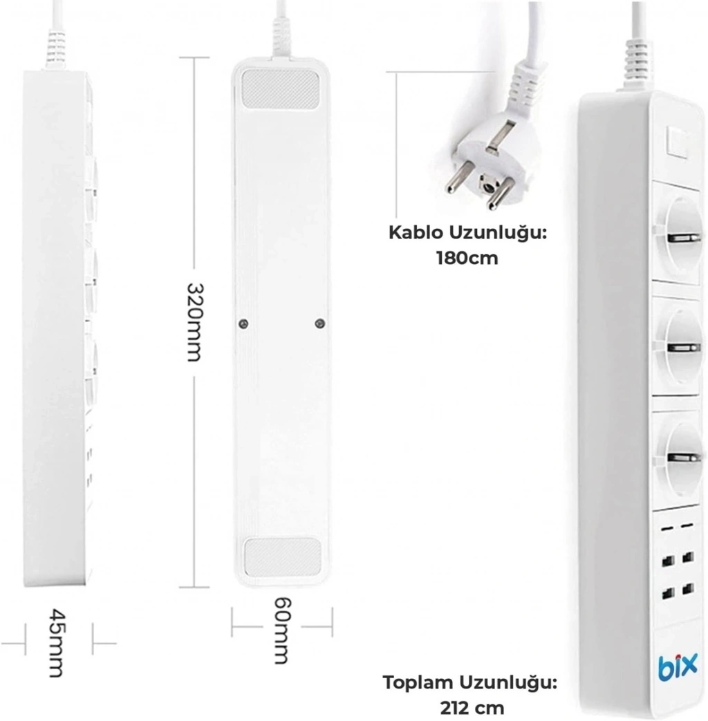 P10 3x Priz 3000w Akım Korumalı 4x Usb 2x Type-c Girişli Çoklu Priz