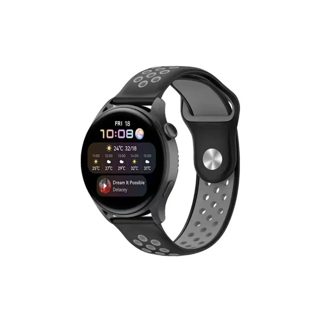 Watch 20mm Spor Delikli Kordon - Siyah-Gri