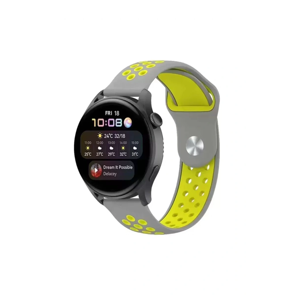 Watch 22mm Spor Delikli Kordon - Gri-Yeşil