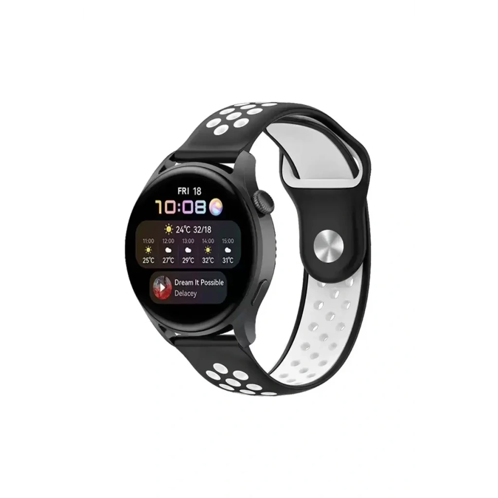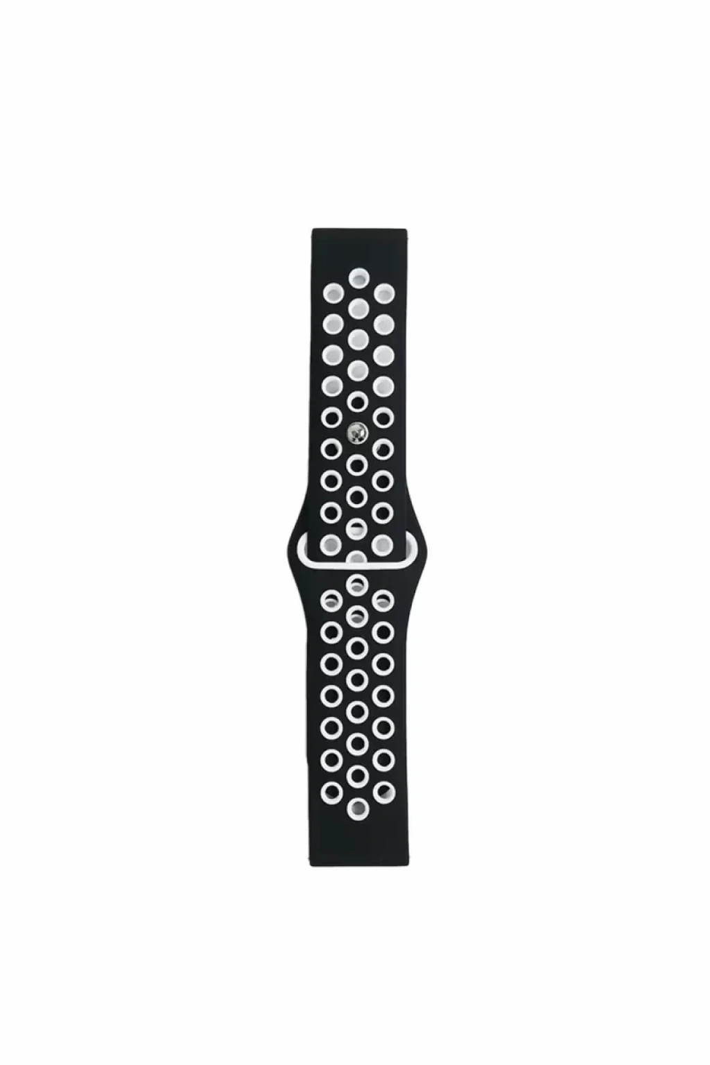 Watch 22mm Spor Delikli Kordon - Siyah-Beyaz