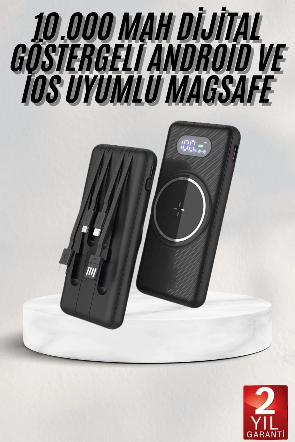 • Wireless Powerbank 10000 Mah Led Ekranlı Dahili Kablolu Hızlı Şarj