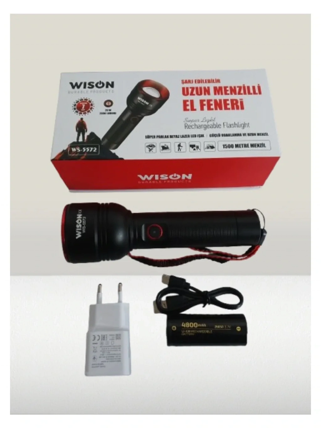 WISON WS-5572 20W Uzun Menzilli Şarjlı Metal El Feneri